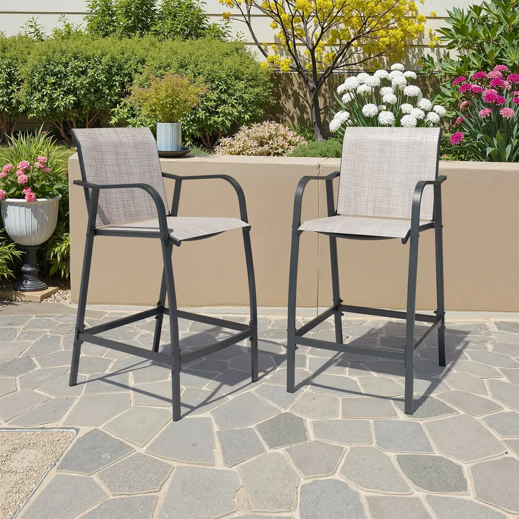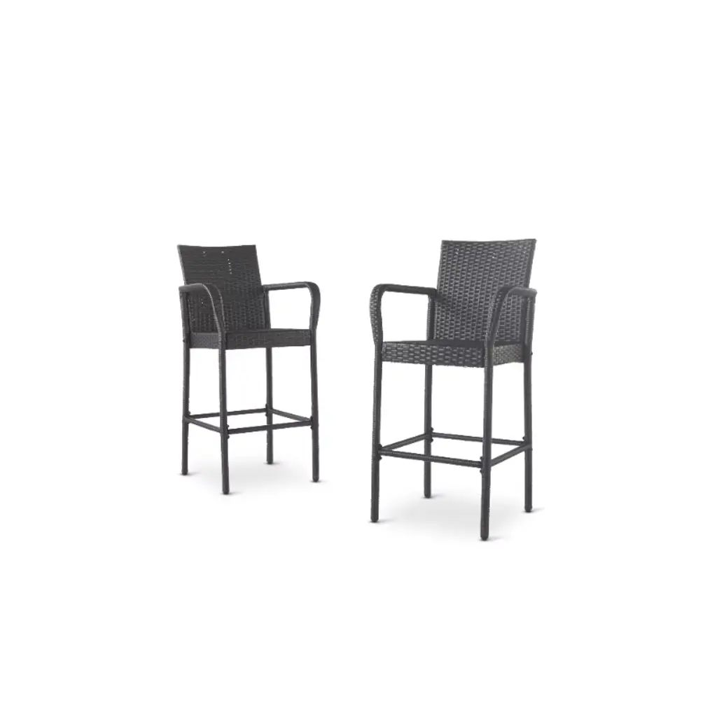 Elevate your outdoor seating with this Set of 2 Outdoor Mix Mocha Wicker Barstools— a stylish, durable addition that works as versatile patio accent chairs for your backyard, outdoor bar, counter, or entertaining space. Blending modern minimalism with outdoor functionality, each barstool features clean, precise lines and a flared structure for a chic look, plus handwoven polyethylene rattan (faux rattan) that adds texture while seamlessly matching any outdoor decor. The powder-coated metal (iron) frame ensures exceptional durability, supporting up to 400 lbs per stool and holding up under heavy use—far sturdier than flimsy plastic outdoor accent chairs. Designed to resist mild weather conditions (with a recommendation to cover/storage during heavy elements), these barstools keep their shape and finish season after season. At 24.8”W×25.35”D×46.5”H with a 29.9” seat height, they fit perfectly at outdoor bars or counters, while multiple finish options let you match your existing furniture. Some assembly is required, but all tools/instructions are included. Whether you’re hosting guests or enjoying a quiet drink, these barstools balance style, strength, and comfort as essential patio accent chairs.