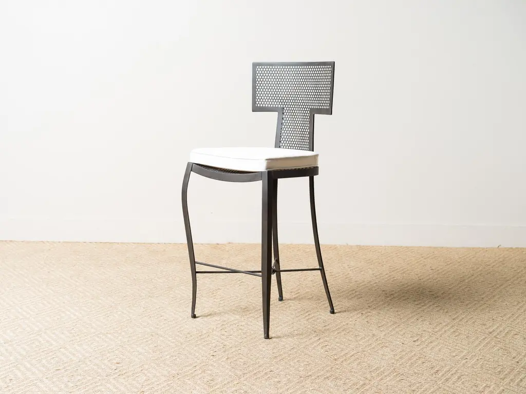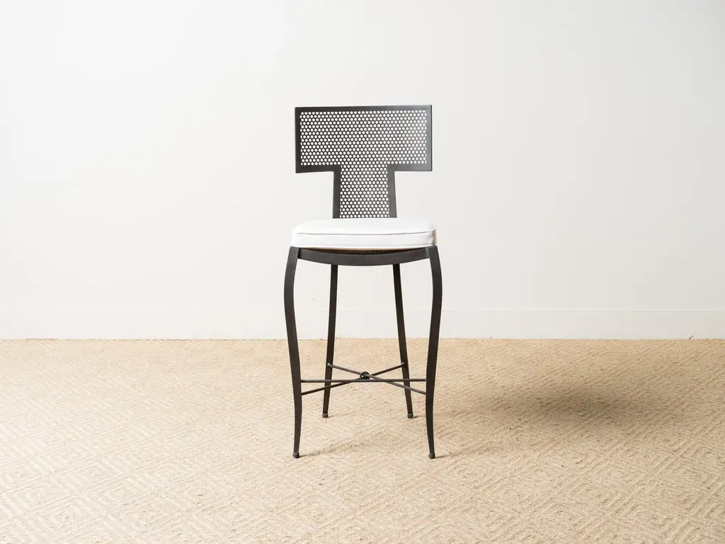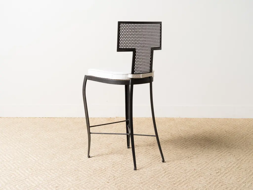 Modern bar stool Fabric: White Alesek 100% Acrylic Powder coated metal mesh back Suitable for indoor or outdoor use