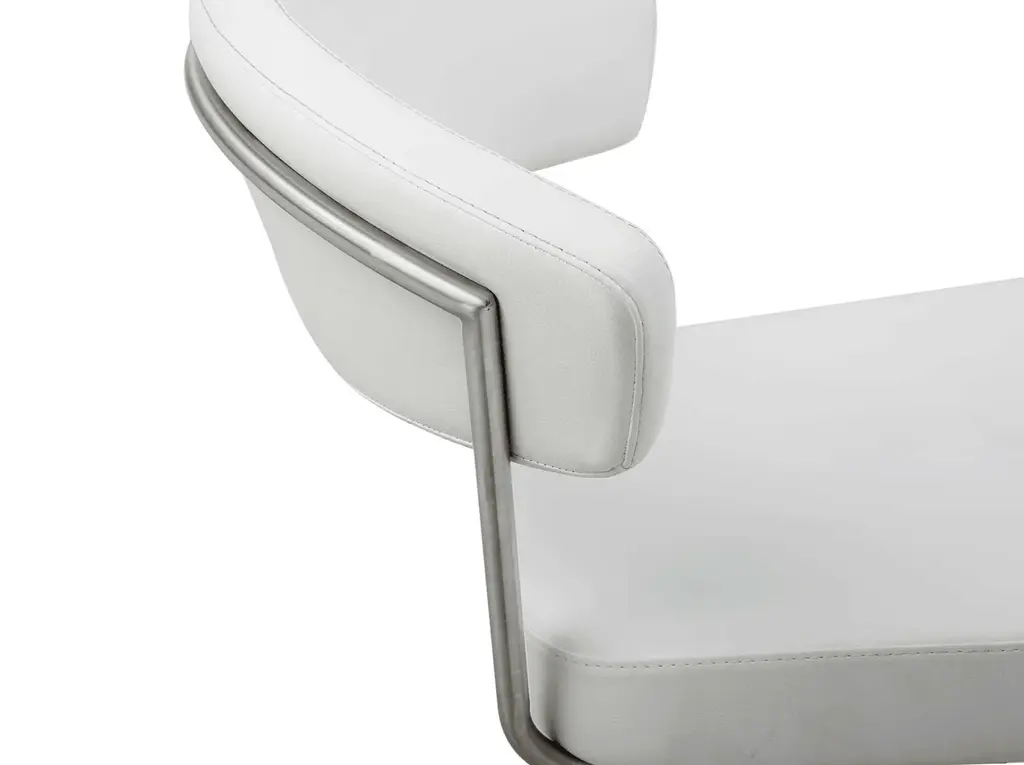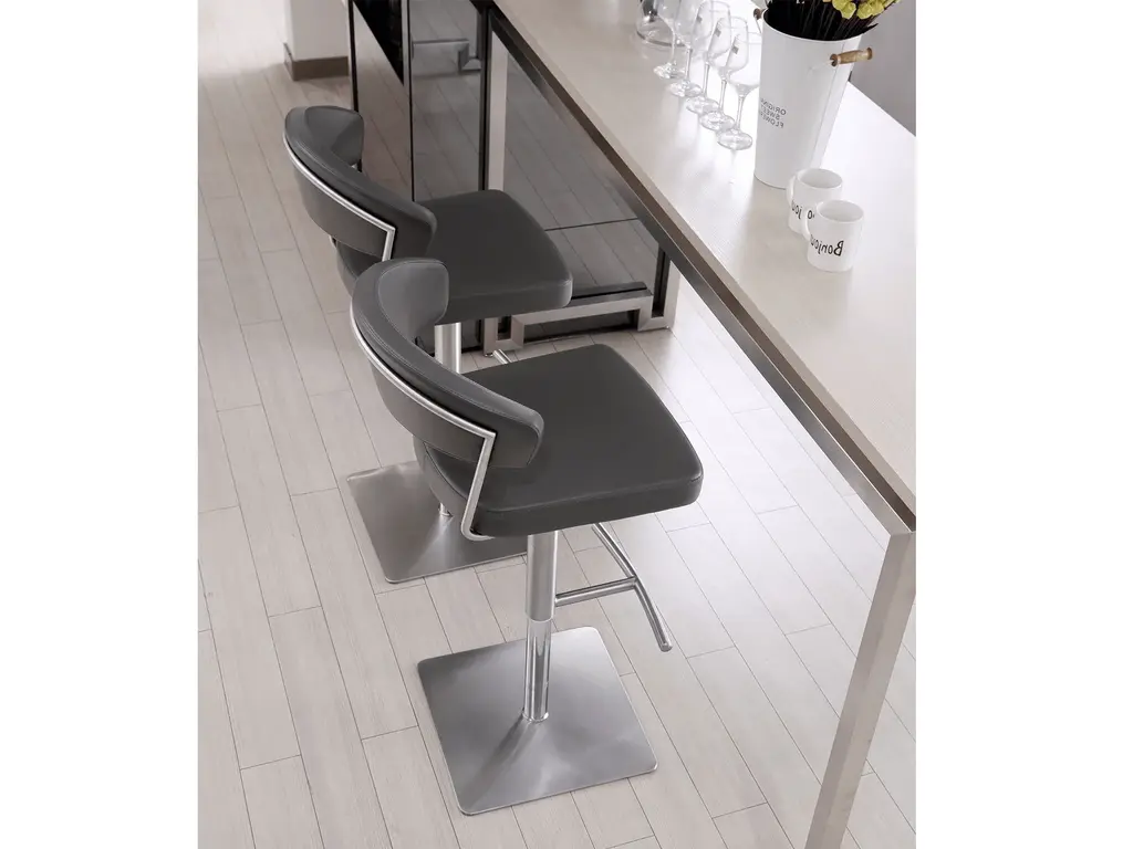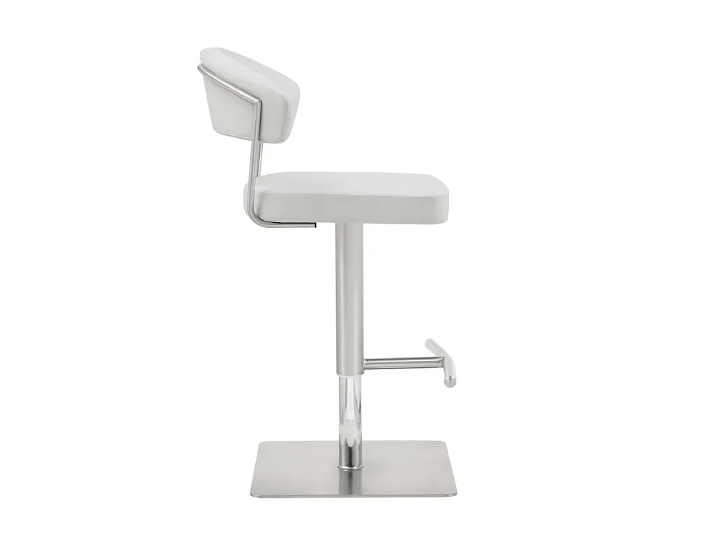 Maureen Barstool Dark Grey or White Faux Leather, Commercial Graded. Adjustable height and square brushed stainless steel base.