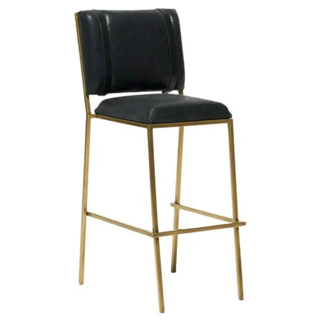 Marissa Industrial Loft Brown Upholstered Leather Iron Legs Bar Stool