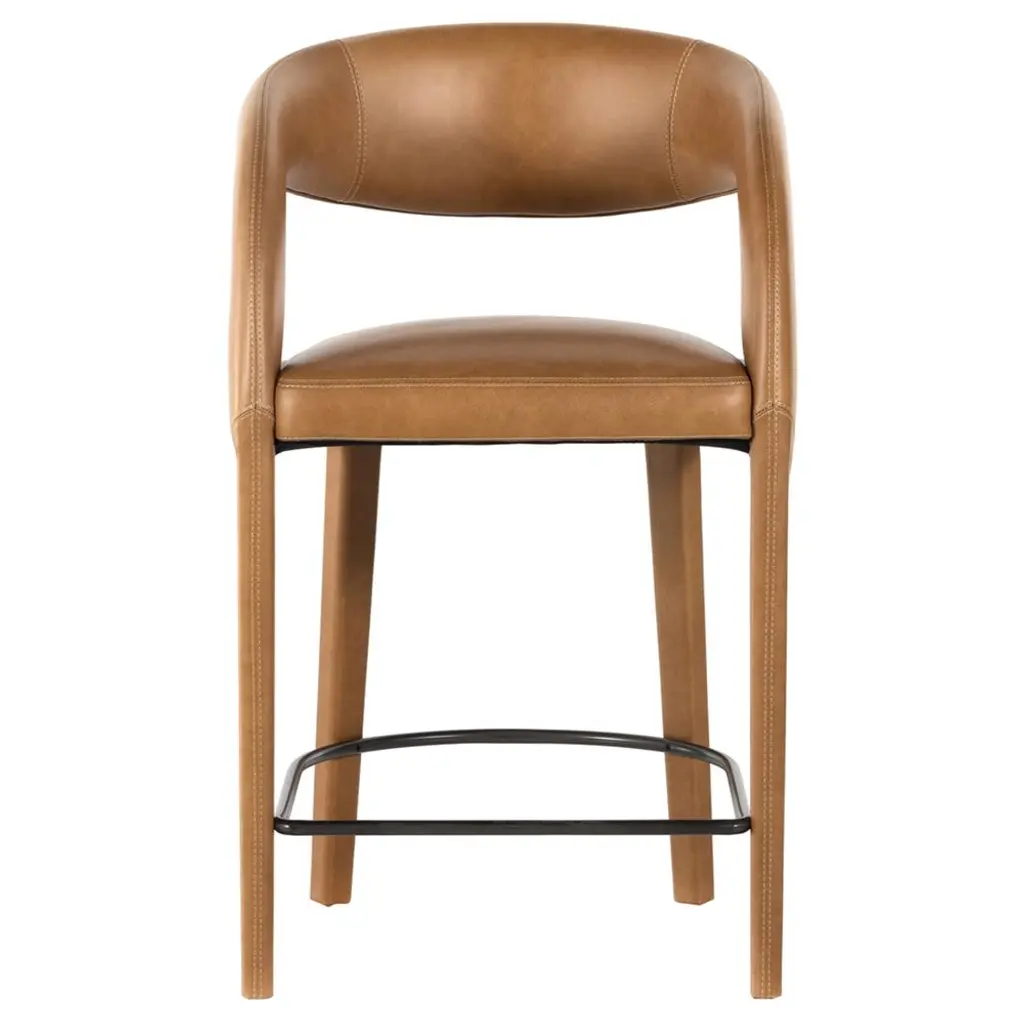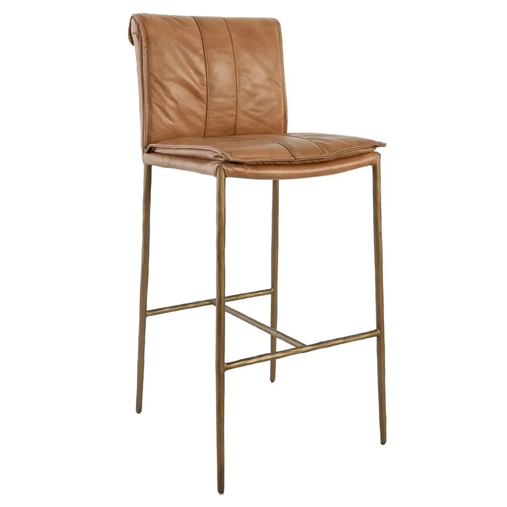 Our Marissa bar stool is the perfect addition to any modern kitchen. Upholstered in adobe tan top-grain leather, the cushioned seat pairs effortlessly with a hammered iron frame on this chic, streamlined piece.