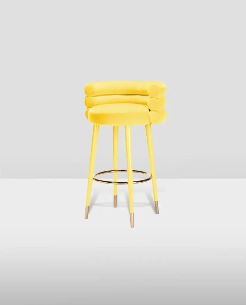 Marshmallow bar stool, Royal stranger Dimensions: 100 x 70 x 60 cm Materials: Velvet upholstery, brass Available in: Mint green, light pink, royal green, royal red Royal stranger is an exclusive furniture brand determined to bring you the best unique pieces of art and design. Fusing design, art and the best craftsmanship, they strive to deliver the best state of the handmade art furniture. The design team works every day to create meaningful products that represent values such as passion, function, aesthetics and know-how. Values that are meant to represent Royal stranger’s DNA. This dedication is present at all stages of production and the combination of craftsmanship and innovative design contributes to our final purpose: to produce certified high-quality products, made with passion and expertise and using royal materials such as gold leaf, rich woods and high quality lacquers. It was in 2013, as an architects, that Sofia Santos & Rui Santos started to push the boundaries of innovation in several retail design concepts for some of the best stores in Portugal. This will has always been present in their work, and that’s how the brand was born. This piece is attributed to the mentioned designer/maker. It has no attribution mark and no official proof of authenticity, however it is well documented in design history. I take full responsibility for any authenticity issues arising from misattribution