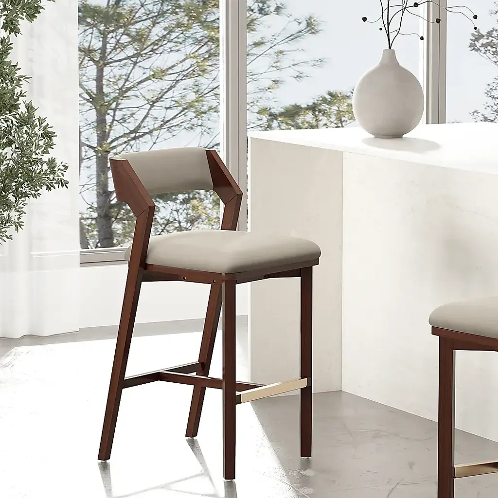 Elevate your space with the effortless sophistication of the Marspoly beige barstool. Wrapped in sumptuous velvet, it invites you to experience luxury with every seat. The gracefully rounded backrest cradles you in comfort, while the gold metal footrest adds a touch of glamour. With its sturdy beech wood frame and plush foam cushioning, this stool seamlessly blends modern elegance with timeless appeal. Fully assembled and ready to grace your home, it's a statement piece that redefines refined living.