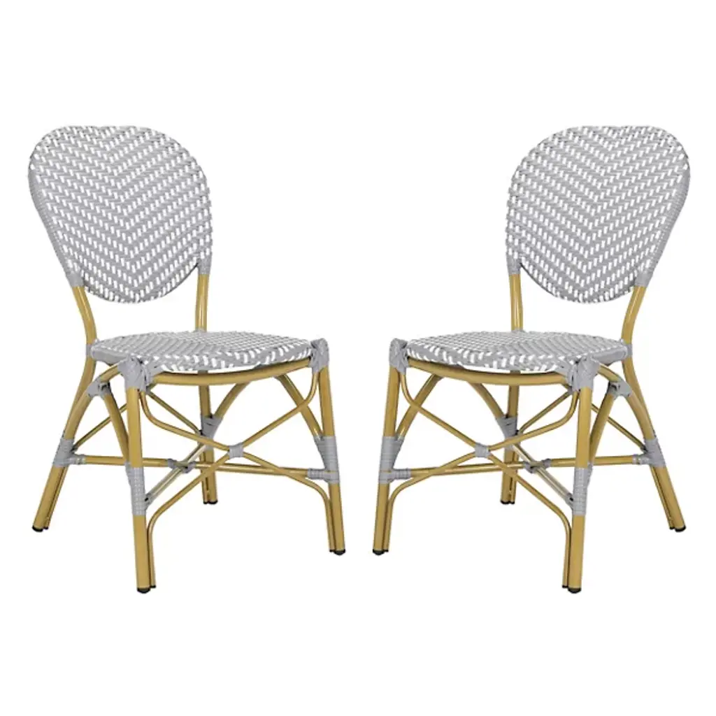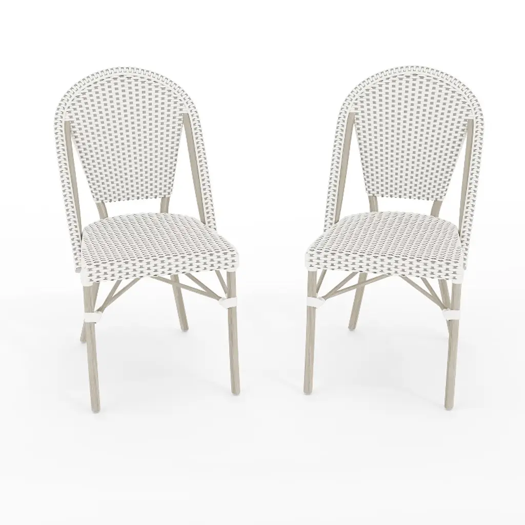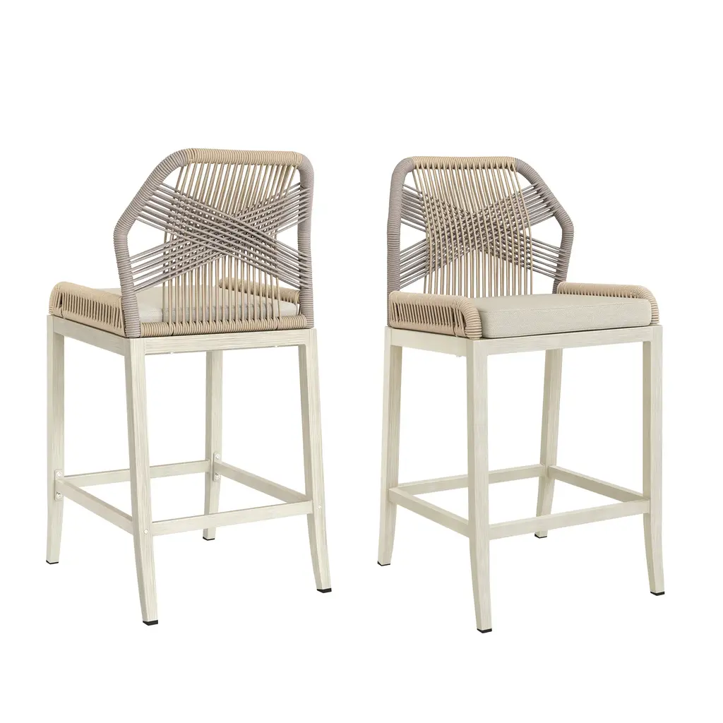 Upgrade your home’s indoor-outdoor retreat with the refreshing style of this set of two Martha Stewart Lily Pond Bistro Bar Stools. The durable, rustproof aluminum frames boast an elegant, hand-brushed, woodgrain finish complemented by seats and backs with a woven rattan pattern. The all-weather construction grants durability and peace of mind, while an efficient design with a recommended stack quantity up to two stools high delivers space-saving convenience and makes it effortless to store multiple stools when not in use. Part of our Lily Pond collection, this set pairs wonderfully with the coordinating dining chairs, counter stools, and dining table, crafting a custom collection that fits your entertaining needs. Arriving with no assembly required and only minimal, hassle-free maintenance, these eye-catching bistro bar stools are a seamless addition to any indoor-outdoor space for everyday use and special occasions.