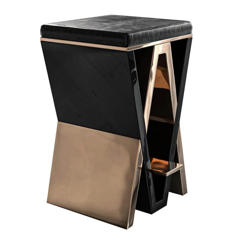"Maschera" Barstool With Bronze And Stainless Steel, Hand Crafted, Istanbul