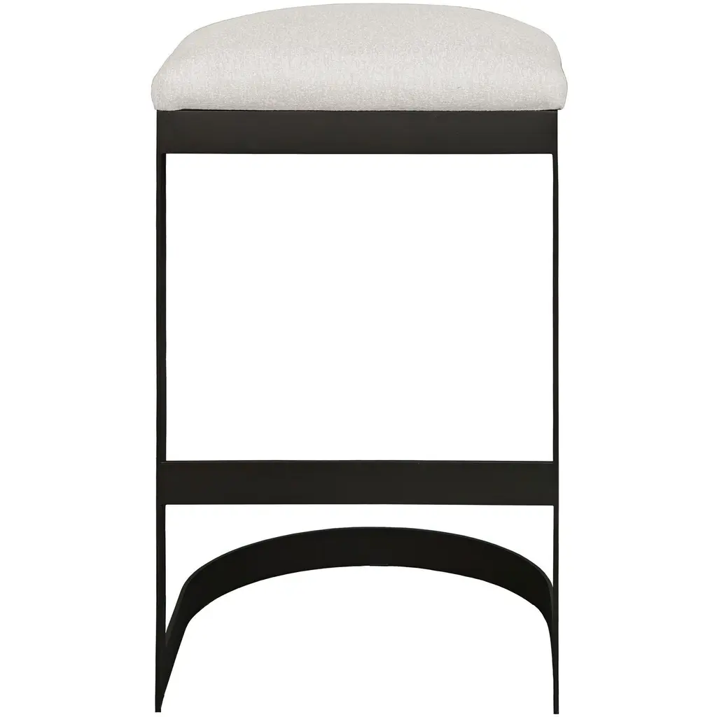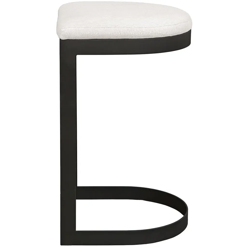 The Maude Outdoor Bar Stool Blends Industrial Style With Cozy Comfort, Featuring A Durable, Powder Coated Steel Frame In Java Black Paired With A Plush Cushion In Heavily Textured Taupe Gray Outdoor Fabric.