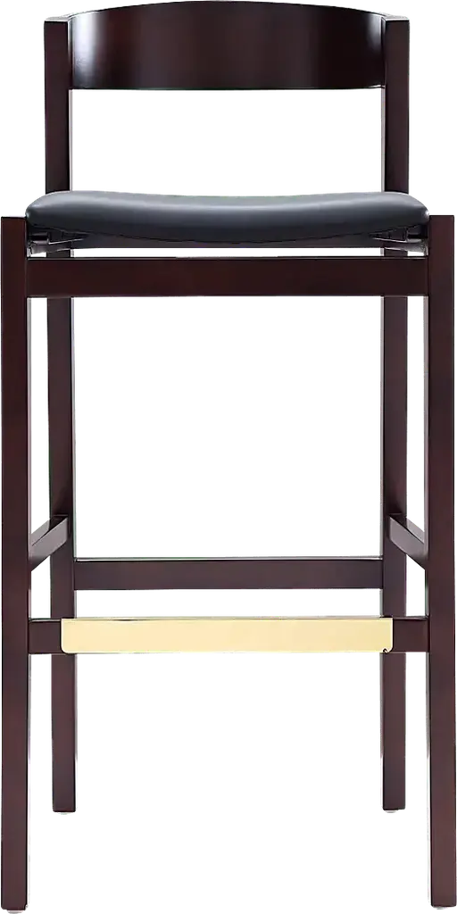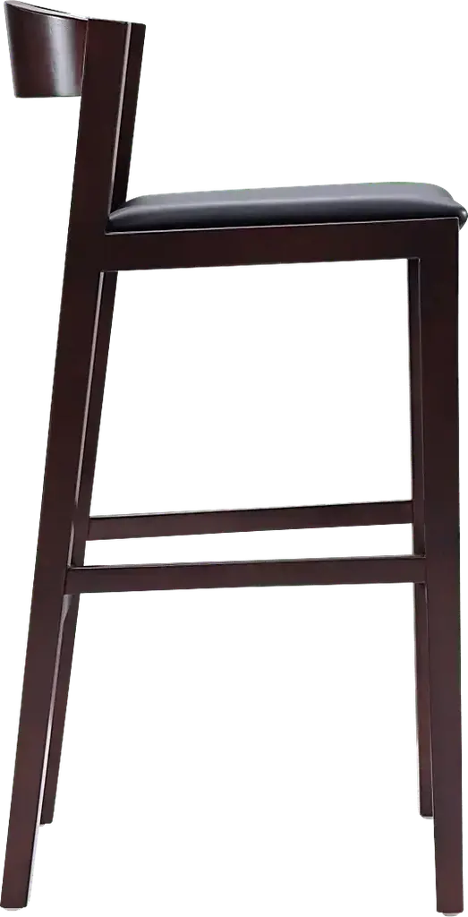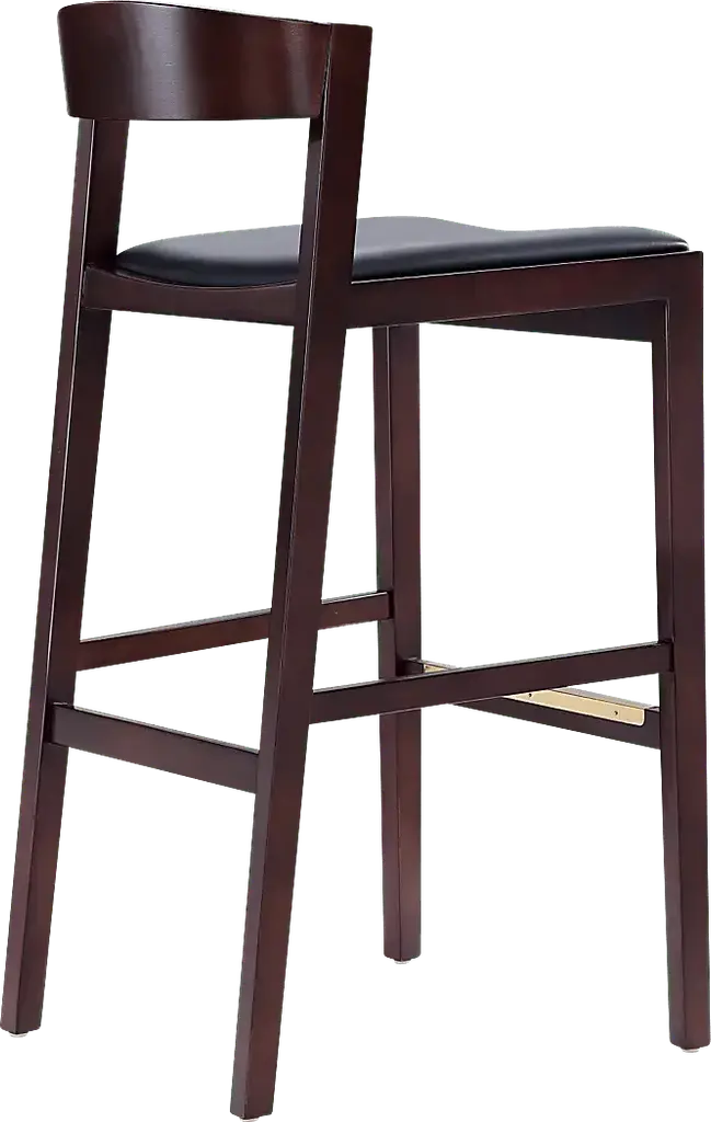 Echoing that Danish modern influence, the Melliville black barstool combines crisp, mitered angles with a smoothly curved back. The handcrafted solid beech frame supports a cantilevered seat, its silhouette architected for comfort.