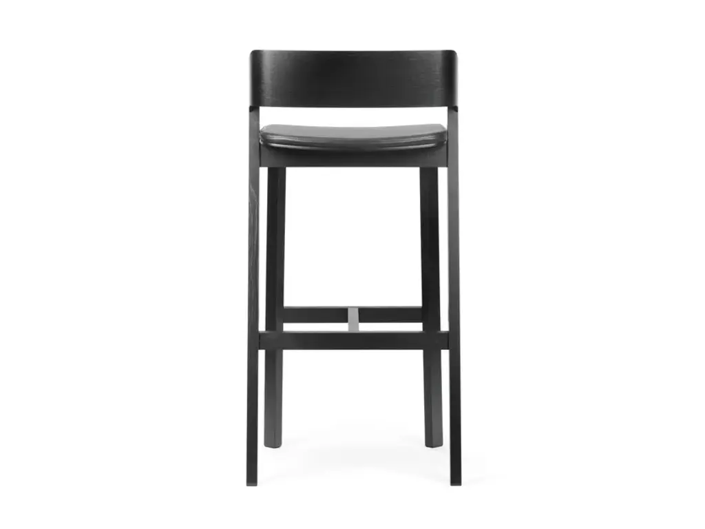 Merano barstool blends a solid wood stool base with the harmonious form of pressed plywood in the seat and the backrest. Thanks to its construction method, the barstool is very light and does not contain any fasteners or metal parts on the non-upholstered version. The tall barstool is part of the Merano seating furniture collection, which also includes a low barstool, chair, armchair and lounge armchair. The barstool is available non-upholstered, fully upholstered, or with upholstered seat only.MERANO is designed both for those who choose a seat mostly for its appearance, and for those who prefer its practical appearance while sitting. The materials used guarantee stability while maintaining a very low weight.