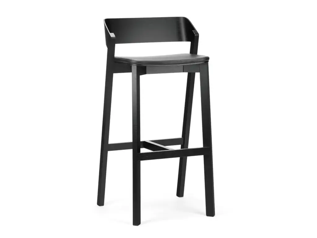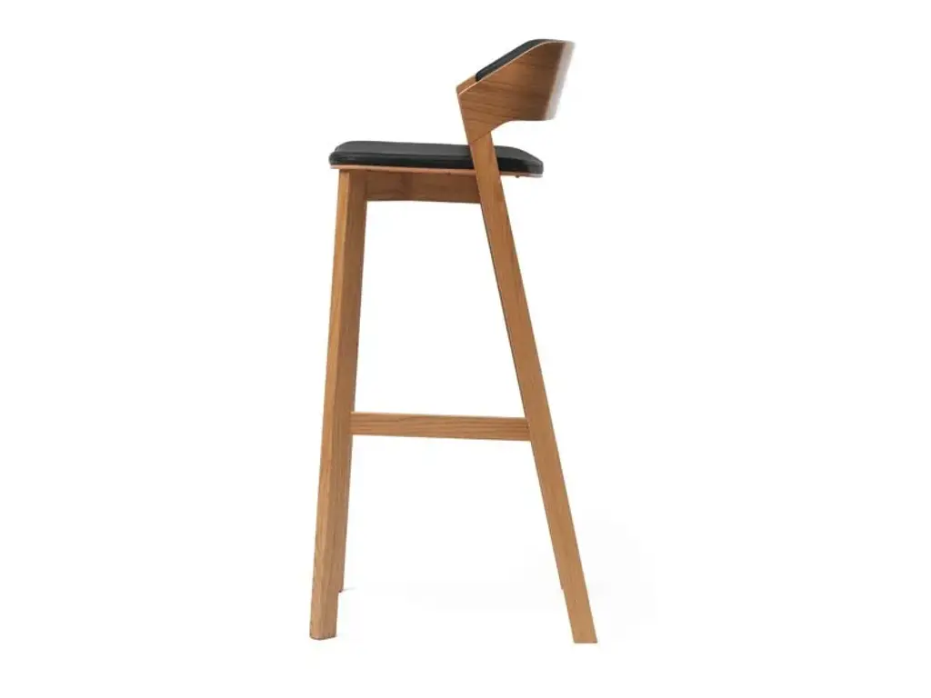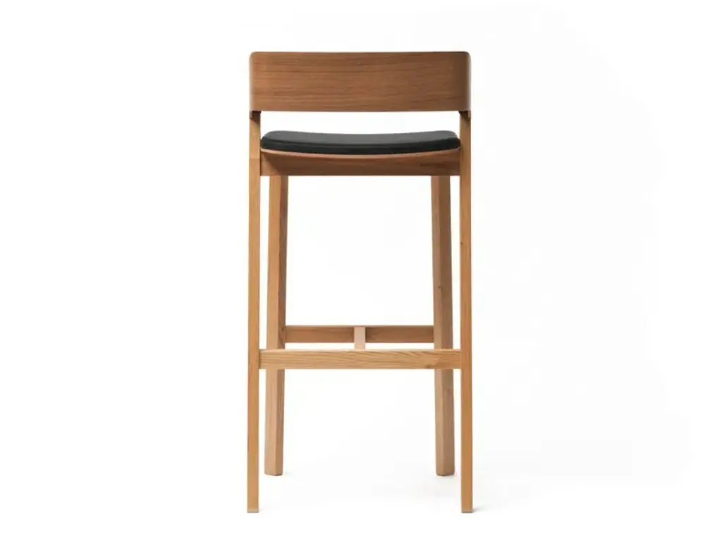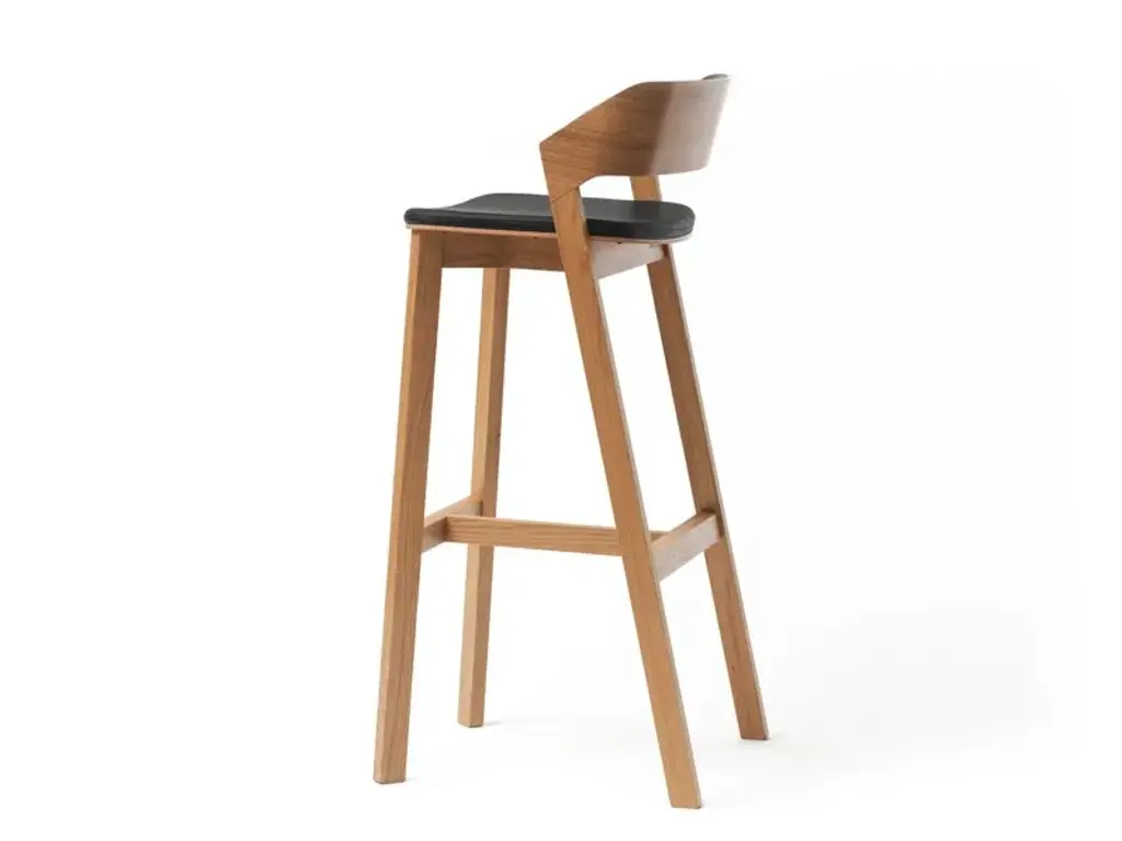 The Merano bar stool combines the bottom design made of solid wood with harmonic shapes of bent plywood in the seat and backrest. Thanks to the production technology used, it is remarkably light and does not contain any screws or metal pieces. Together with the chair and the low bar stool design, it creates a set with the Merano armchair. We also offer an upholstered version.Total height High barstool (cm) 99,4Total height Low barstool (cm) 82,4Seat height High barstool (cm) 80Seat height Low barstool (cm) 63Width of seat (cm) 44Depth of seat (cm) 36Weight for delivery (kg) 6,5Volume (m3) 0,312Standard delivery time is 4-6 weeks, but in some cases may take longer.MERANO is designed both for those who choose a seat mostly for its appearance, and for those who prefer its practical appearance while sitting. The materials used guarantee stability while maintaining a very low weight.