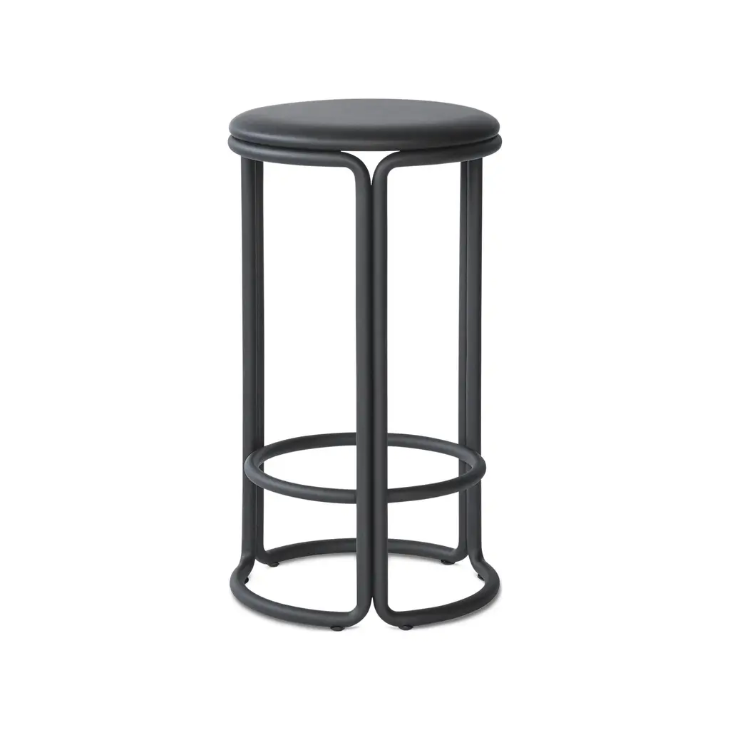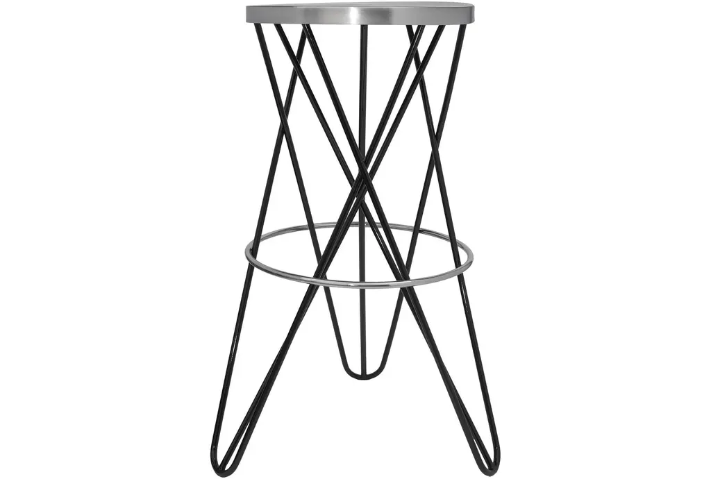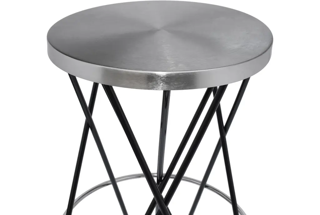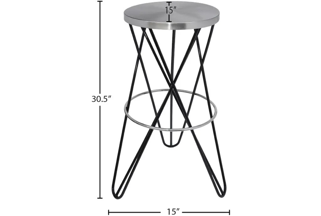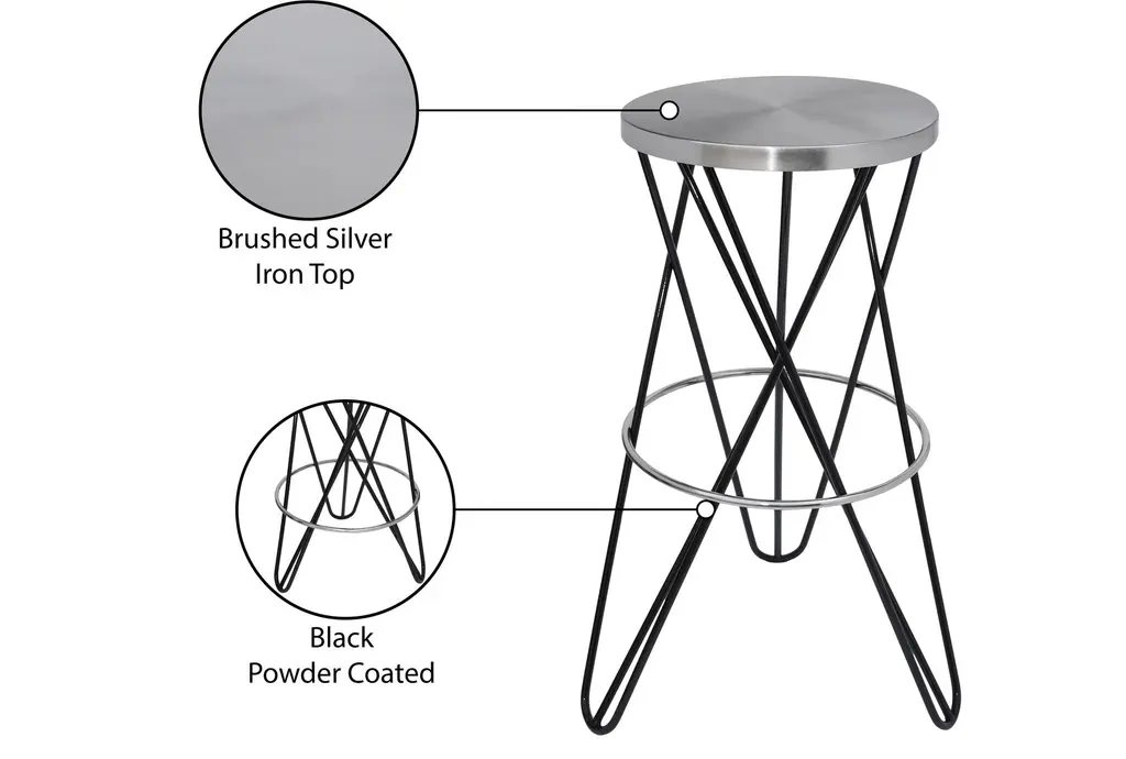 Mercury Black Iron Metal Barstool With Brushed Silver / Black Powder Finish