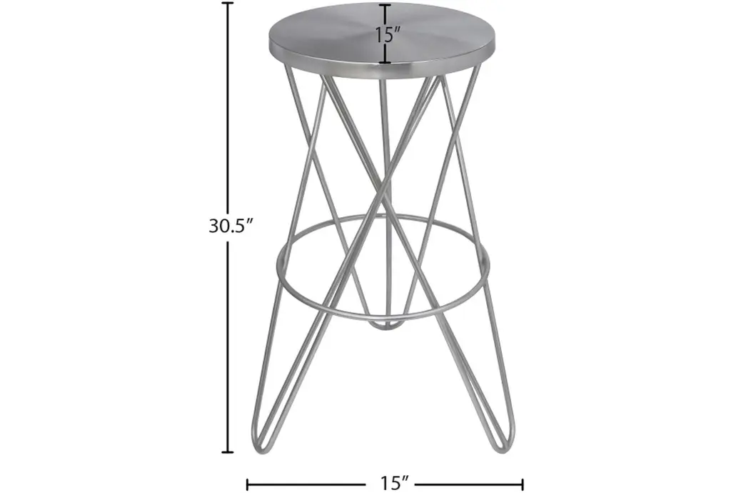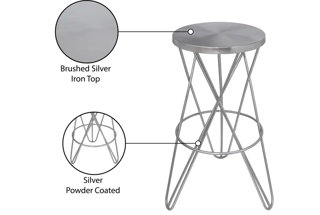 Mercury Silver Iron Metal Barstool With Brushed Silver Finish