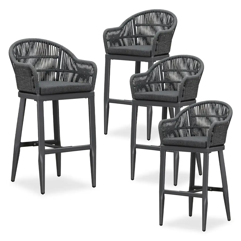 Merrick Lane Set Of Four Restaurant Style Barstool With Gray Pe Rattan Seat For Indoor/outdoor Use