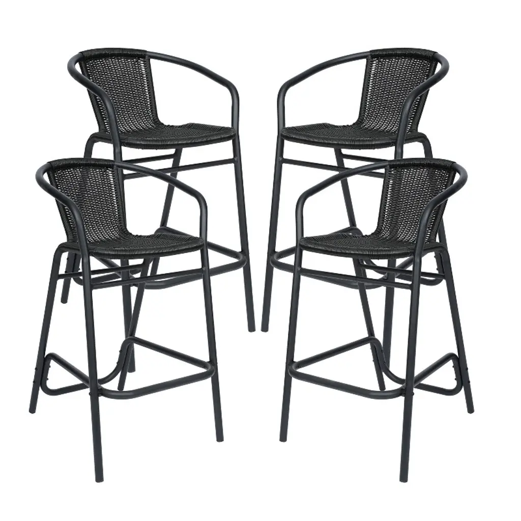 Showcase luxurious comfort and sleek style wherever you need it with this set of four restaurant style barstools built for indoor and outdoor use. PE rattan seats and backs are both durable and cozy and added footrests provide flexible comfort. The powder coated frames are built to hold a static weight capacity of up to 400 lbs. each that makes these an addition to your space that is lightweight and durable. The barstools ship preassembled, and the footrests assemble quickly and easily. Simply use a water-based cleaner for cleanup.