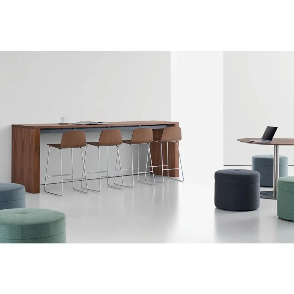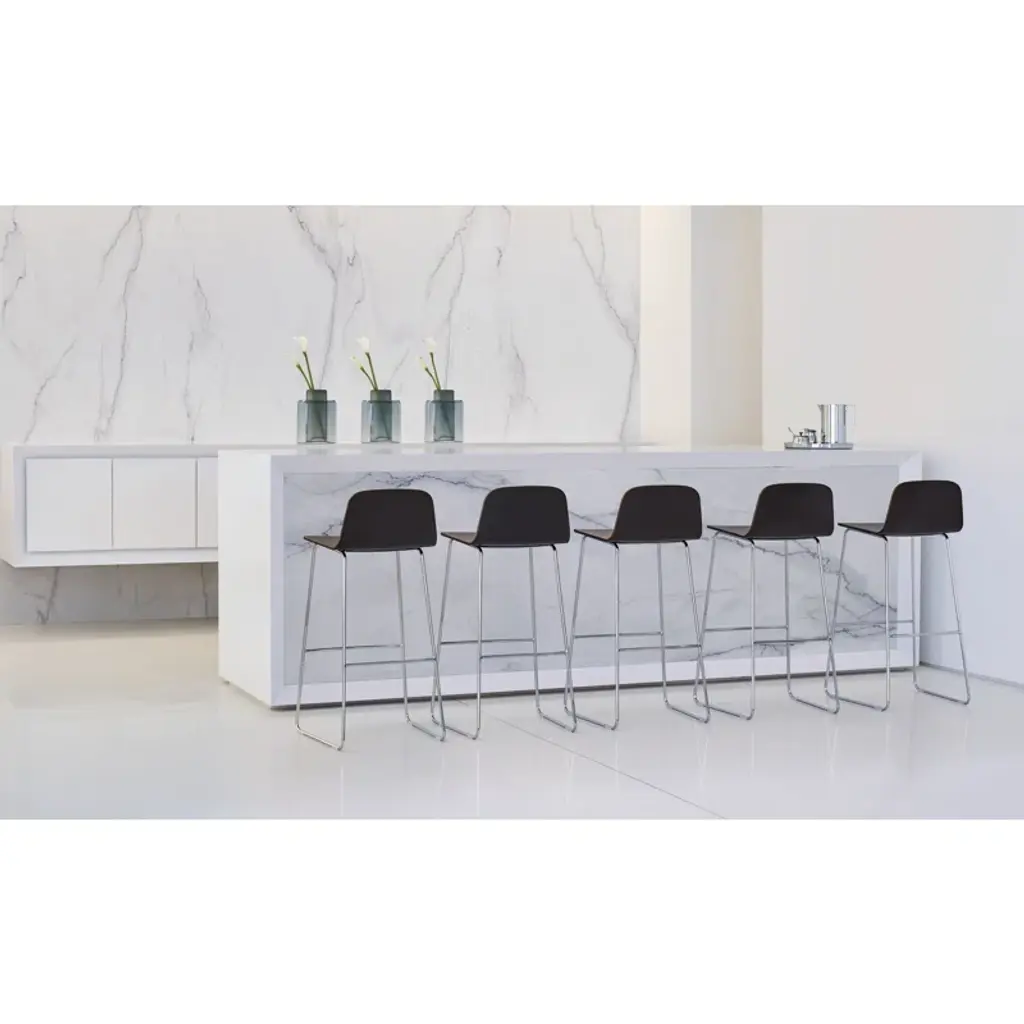 The Mezzo stool is the result of an elegantly streamlined design, evoking a light and airy appearance. Mezzo features a sculptural shell that conforms to the body, supported by a refined tubular sled. Mezzo is classic and illustrates the ultimate sophistication.
