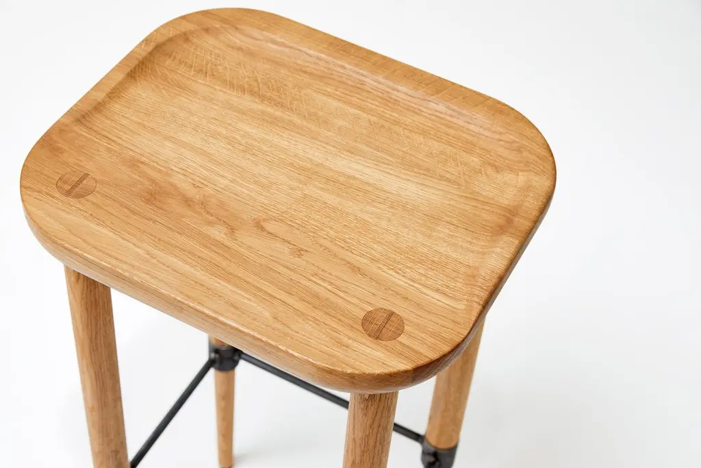 MG102 Kitchen Bar Stool by Malte GormsenDimensions: D 37 x W 43 x H 65 cm.Materials: Oak, blackened metal.Available in Nature, Raw Nature, Light Nature, Grey Nature, and Dark Nature.Malte Gormsen Møbelsnedkeri is a cabinetmaker who combines Danish craftsmanship traditions with the latest technology. Our client list includes restaurants, shops, hotels, and private customers worldwide. At our design studio and workshop in Copenhagen, we create custom-made interiors and furniture with an uncompromising focus on quality.Cabinetmaking runs through Malte Gormsen’s veins. With a creative mother and a father, who was a cabinetmaker as well as an architect, Malte Gormsen was an equally creative child. He trained as an apprentice cabinetmaker at a young age, initially in Scotland with a small family-owned cabinetmaker workshop and later with Niels Roth Andersen, where he helped make furniture pieces by distinguished designers such as Finn Juhl, Helge Vestergaard Jensen, and many others.Today Malte Gormsen Møbelsnedkeri is one of the most esteemed cabinetmakers both in the Nordic countries and internationally and has managed to unite fine cabinetmaking and joinery under one roof.The uniting theme is uncompromising craftsmanship, a distinct aesthetic, and a strong sense of professionalism, achieved through a combination of classic cabinetmaking solutions and complex technology.
