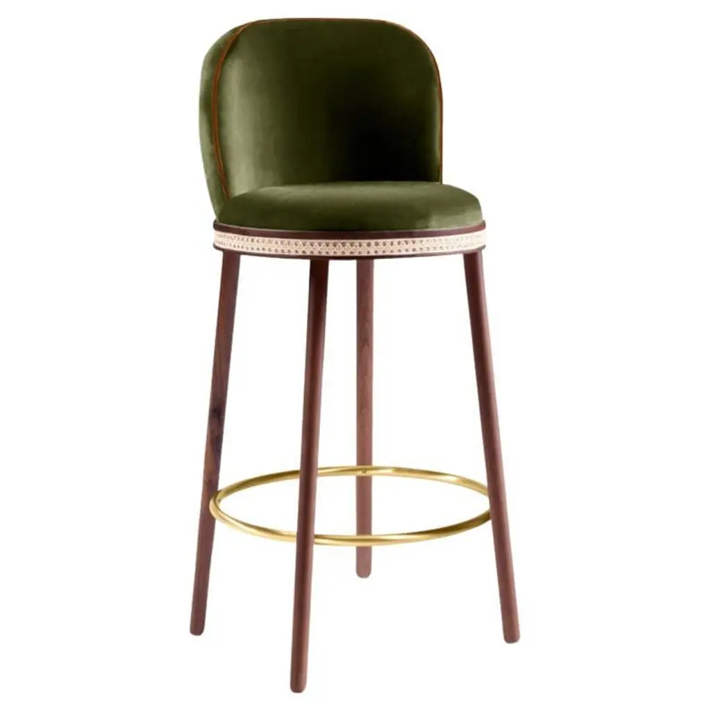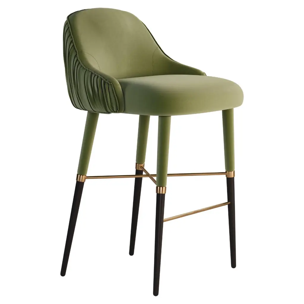 Bar stool with walnut, oak or ash legs and fully upholstered seat and back.Available in counter or bar height. Seat Height: 30? (Available in counter seat height 26? or custom height)COM available.