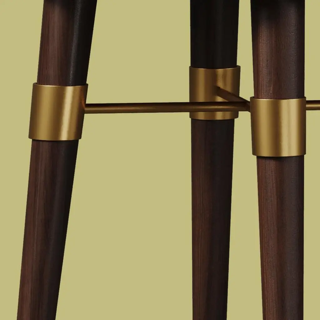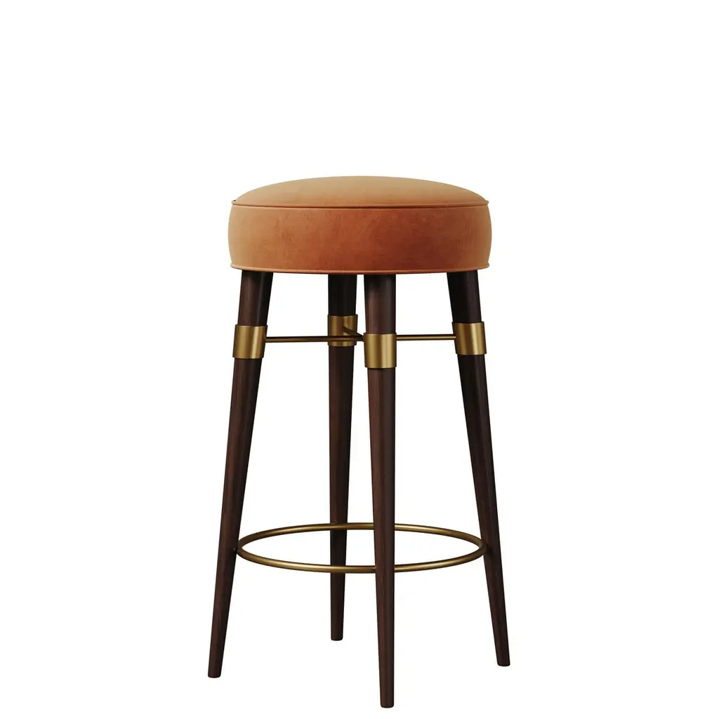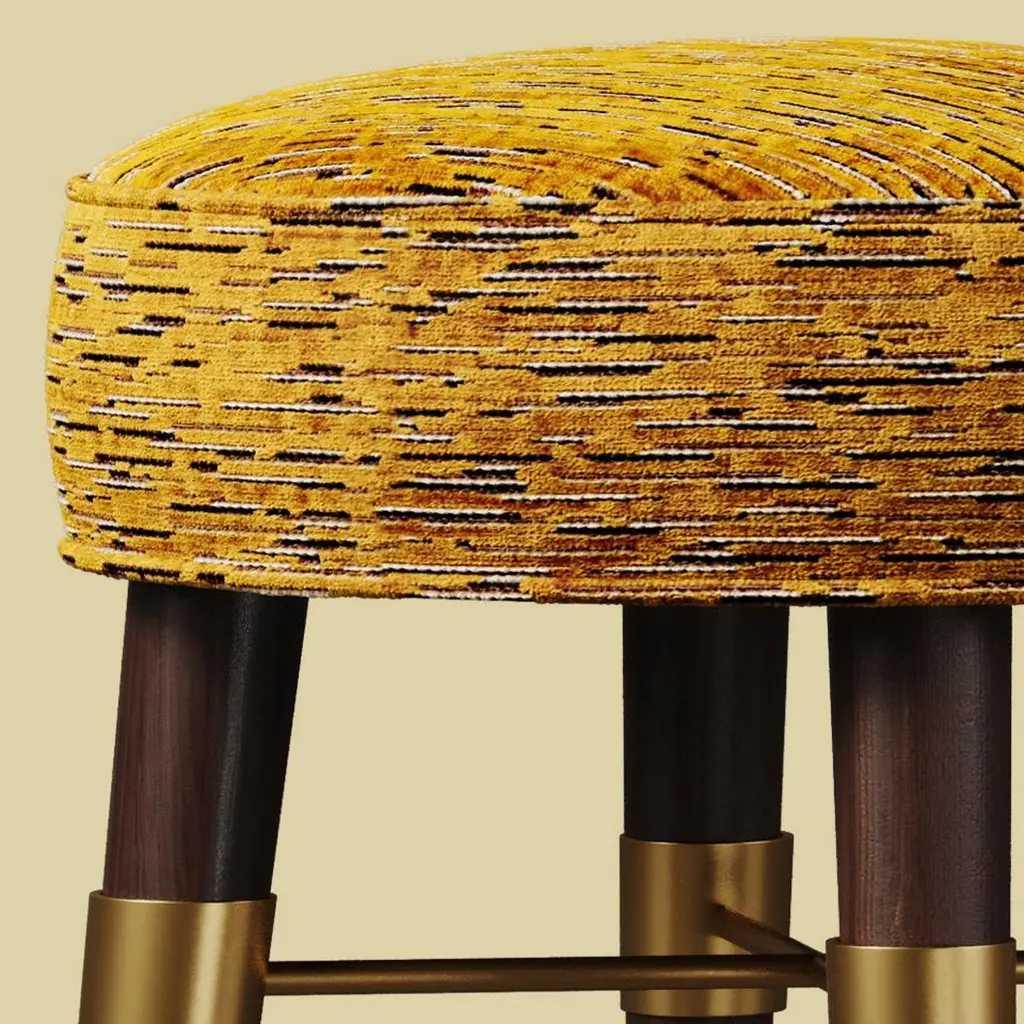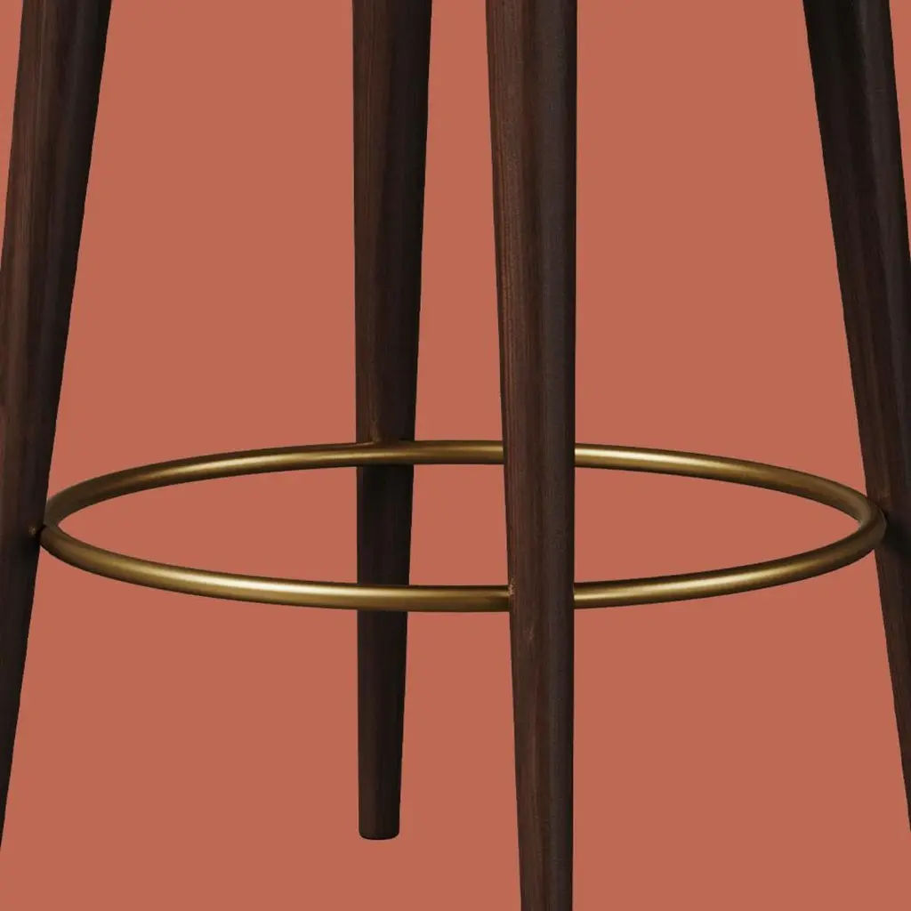 Mid-Century Modern Louis Bar Stool Walnut Wood Linen Made In Portugal By Ottiu