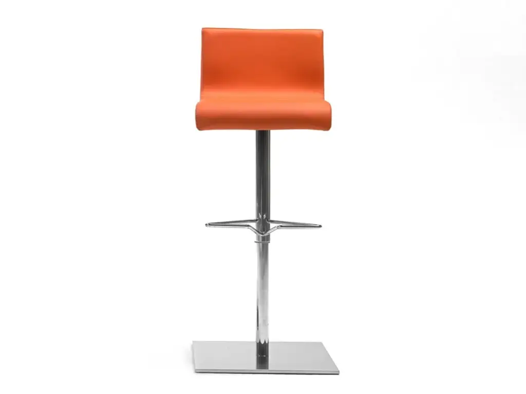 Inspired by the trumpet shape of the calla lily, the Mila Bar Stool brings a new spin to any room in need of fresh, fun style. The curved back of its bold red swivel seat contrasts its sleek chrome base and footrest.