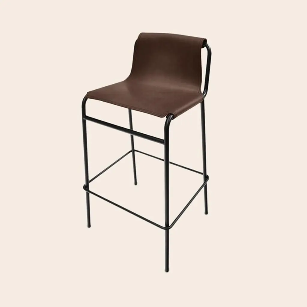 Mocca September Bar Stool by OxDenmarqDimensions: D 38 x W 42 x H 93 cmMaterials: leather, black powder coated steelAlso available: different colors available.Ox Denmarq is a Danish design brand aspiring to make beautiful handmade furniture, accessories and lighting in natural high-quality materials in fair prices. " When we set out back in 2003, we were primarily working with vegetable-tanned saddle leather thus the name OX was a tribute to our unique leather and the animal providing it.The other half of our name, DENMARQ, is chosen to emphasize that we are a Danish design brand based on the Danish design tradition and that most of our furniture is produced in Denmark. However, DENMARQ not only refers to our home country, but also to the co-founder and designer - DENnis MARQuart.Before finishing his design studies at the Copenhagen Design University, Dennis Marquart did a Blacksmith education. This background is extremely useful when developing and designing products."Ox Denmarq handmade products will only get more beautiful as time passes and natural patina sets in.Many OX products are shaped around marble or vegetable-tanned saddle leather. Stone and leather are materials that will, and should, get marks over time. But they will also age with a very special beauty. When you learn to appreciate the beauty of maturity and of time passing, you have learned to appreciate patina the way it should be appreciated.