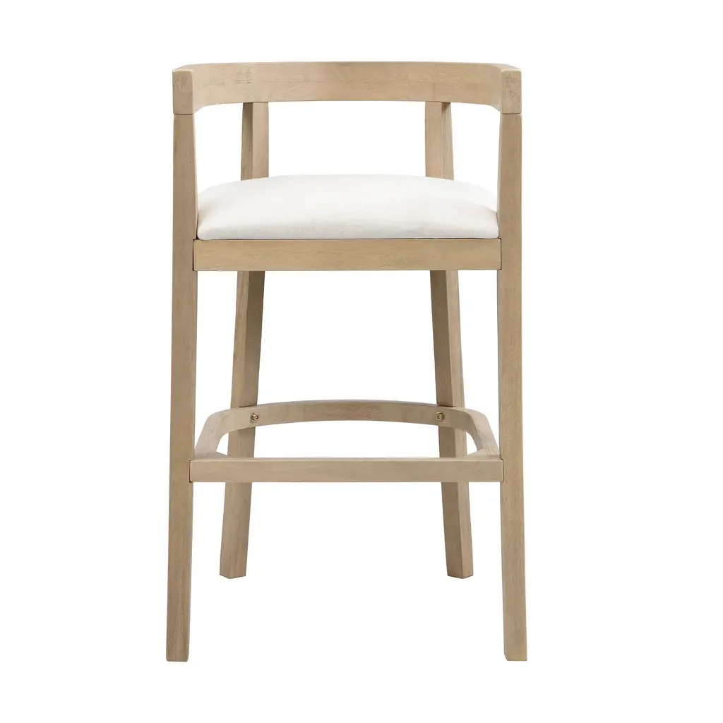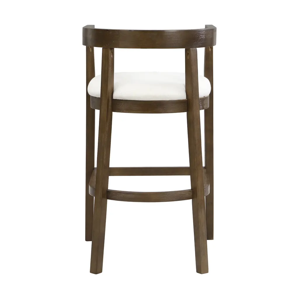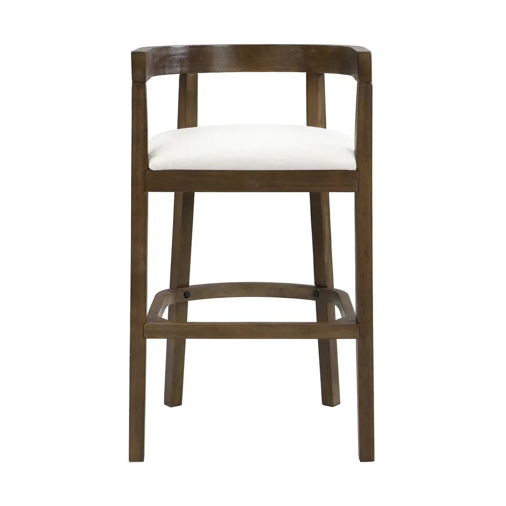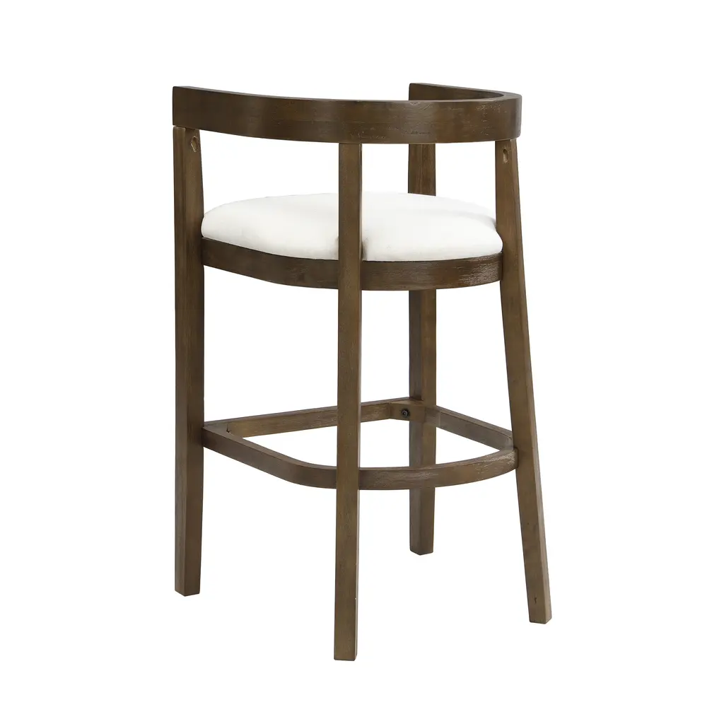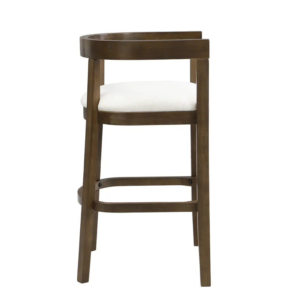 This modern 2-piece set of bar stool features a crafted form made from wood with a sleek and stylish design. The stools showcase a unique cutout barrel back and arms, adding a touch of contemporary elegance to any dining space. The U-shaped seats are upholstered in a high-quality polyester blend fabric, offering both comfort and durability. With foam padding, these chairs provide a cozy seating experience for meals or gatherings. CONTEMPORARY DESIGN: Featuring a clean, open-back tub design, our bar stools offer the look, feel, and design of a truly contemporary piece. With a minimalistic yet refined structure, this set brings out a simplistic style that emphasizes comfort and functionality. UPHOLSTERED: Our stools are beautifully upholstered, giving any room a refined appearance. This provides a smooth, immaculate texture for this piece as well as cozy seating for comfort. RUBBERWOOD FRAME: Our environmentally-friendly wood not only offers plenty of durability, but it also gives this piece a beautiful natural-grain look. Combined with a gorgeous finish, this wood will truly stand out in any room.