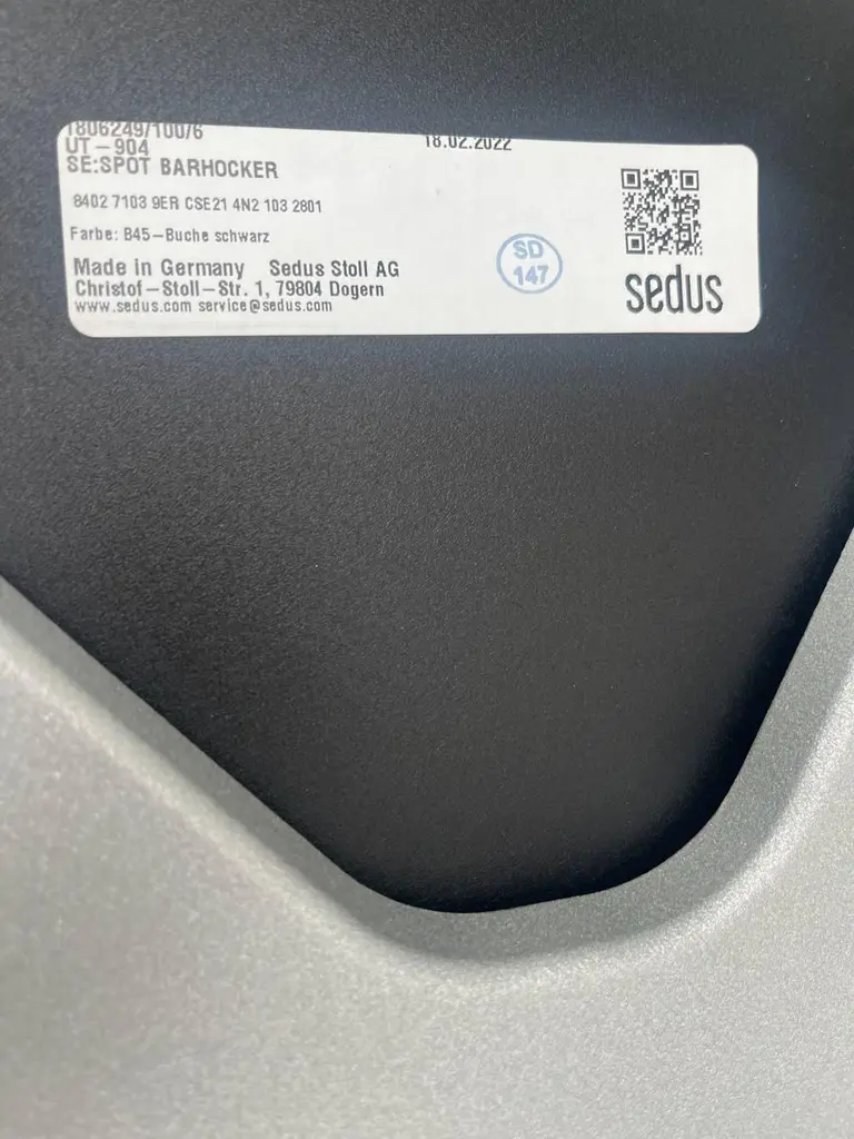 The Sedus se:spot bar stool high in black impresses with its modern and timeless design, which fits seamlessly into a wide variety of environments. with an ergonomically shaped seat shell, it offers optimal comfort and supports a healthy posture even when sitting for long periods of time. The sturdy frame ensures high stability, while the integrated footrest provides additional comfort. Thanks to its elegant black color, the bar stool looks particularly elegant and goes perfectly with counters or bar tables in offices, meeting rooms, lounges or in private areas. The Sedus se:spot bar stool combines high-quality design with practical functionality and is a stylish addition to any room. There is also an upholstered cover for an even more comfortable seating experience. Condition: The bar stool is in very good condition. The materials are well cared for and there are no visible damages or noticeable signs of wear. The seat, whether upholstered or made of plastic, is clean and undamaged. The legs and footrest made of robust material show no scratches or signs of wear, which indicates careful use. This piece has an attribution mark, I am sure that it is completely authentic and take full responsibility for any authenticity issues arising from misattribution