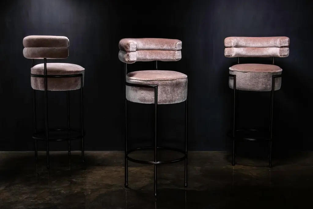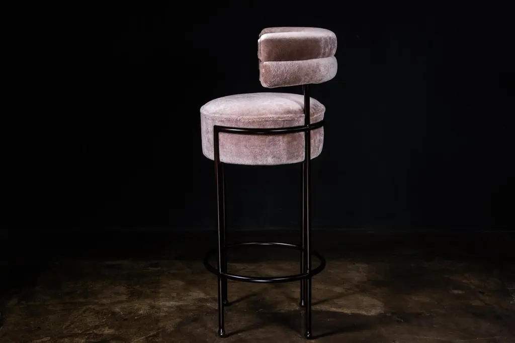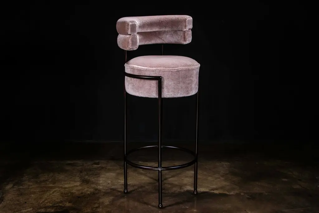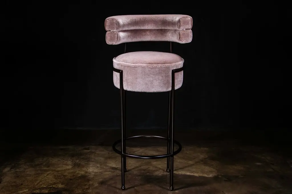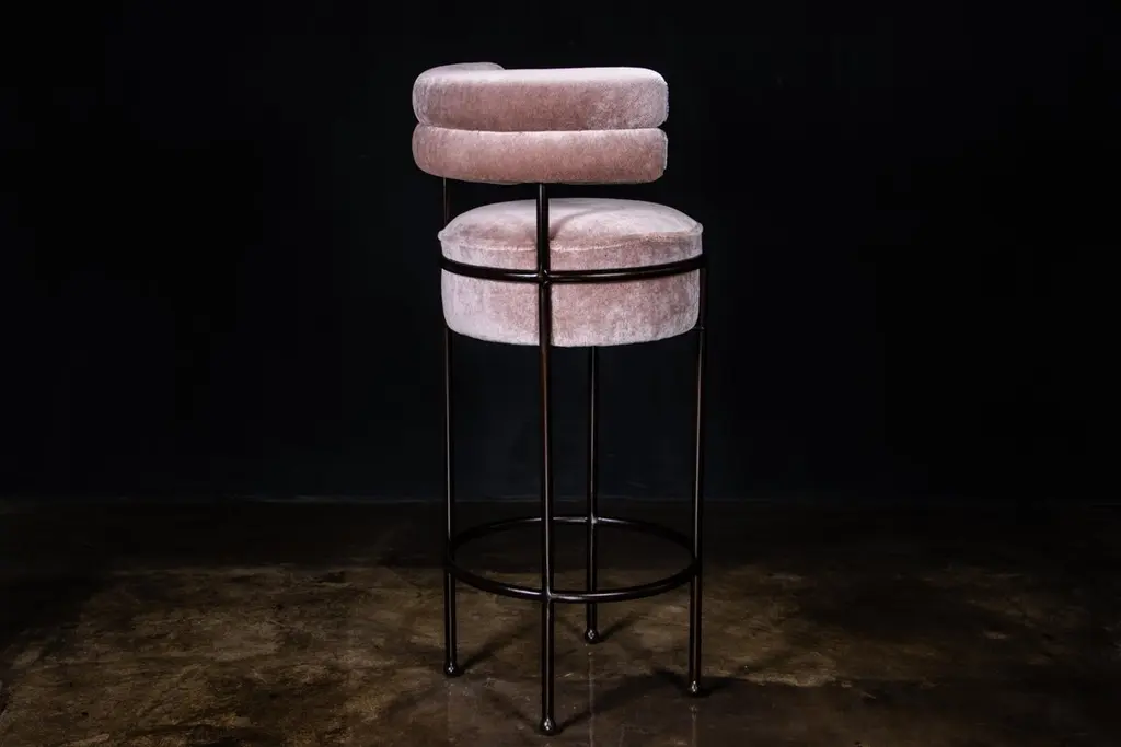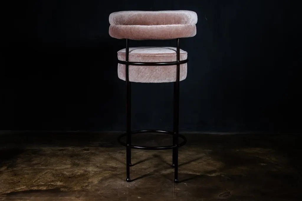 MIrabella Modern Upholstered Round Bar Stool in COM and Metal by CostantiniDimensions are 21.5" Dia x 41'' H x 30" SHThis modern yet classic bar stool is shown in a blackened metal finish and COM (1.5 yards). Also available in COL (24 sf), or Costantini leather. About Costantini Design Costantini has been a trusted source for custom furniture, objects and lighting for a global client base since 2002. Its founder and owner, William Stuart, is a designer and artist who began his career as a multimedia artist and sculptor, practices which continue to inform the work. With a studio showroom in New York and a team of artisans at their own workshop in Buenos Aires, the Costantini team is able to connect artisans and artists with acclaimed clientele around the world. Its artisans work across many varied materials such as bronze, solid wood, fiberglass, steel, plaster, goatskin, leather, rush, iron, marble, sheepskin and more. Their work has been featured in publications such as Architectural Digest, Galerie Magazine, the Wall Street Journal, Interior Design Magazine, Luxe, and more. Visit their New York or Buenos Aires locations by appointment.