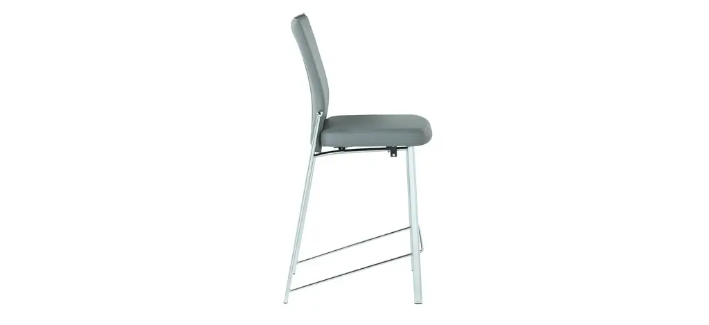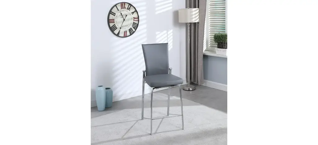 This Mollie stool features motion functionality on the back for increased relaxation, upholstered in quality faux leather with a fashionable accent zipper on the backrest for a sleek look, set on chrome-finished metal legs.