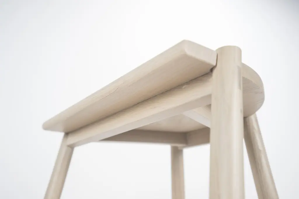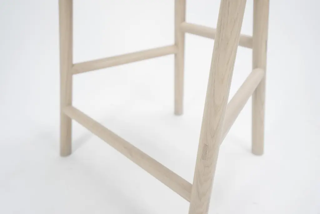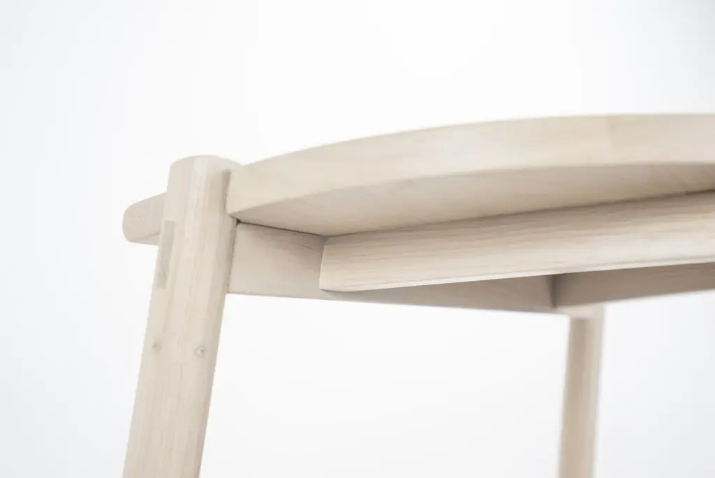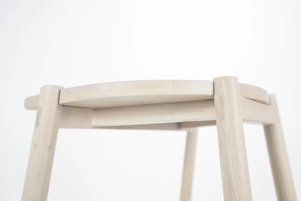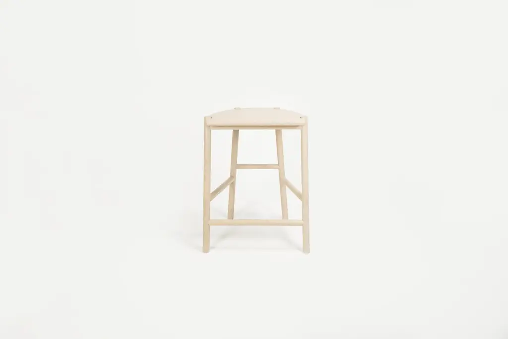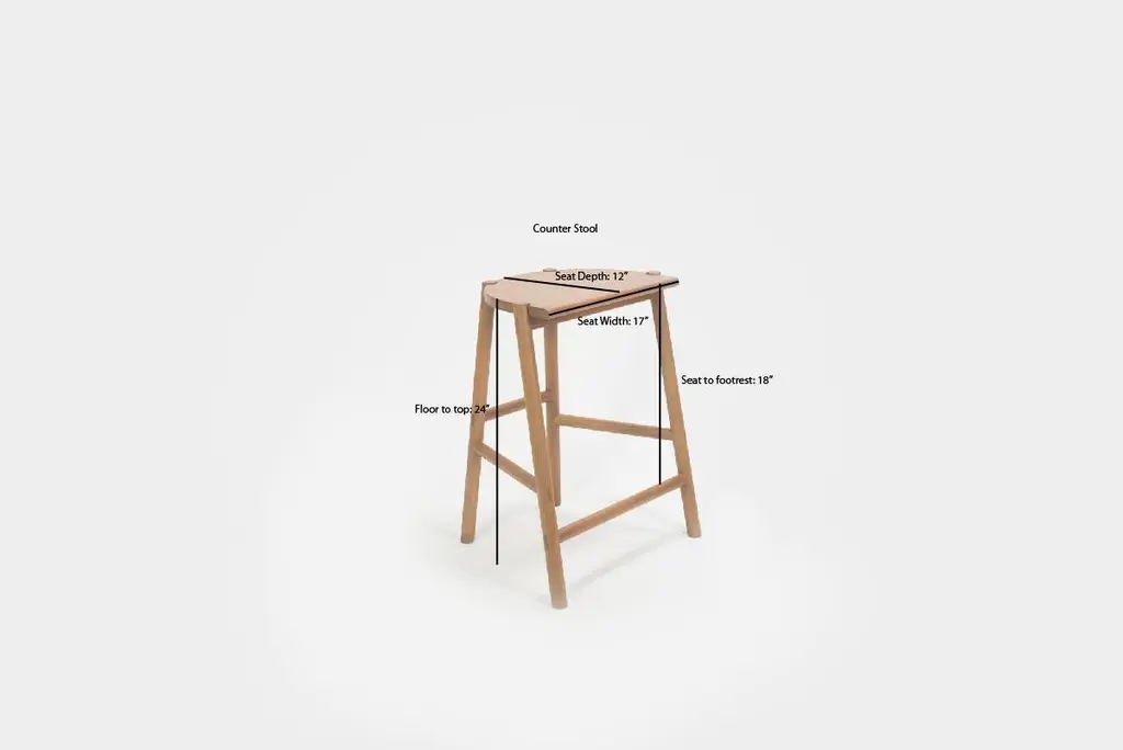 The Moon Stool is a stool named for its moon-shaped seat. This stool is crafted with solid white oak and traditional joinery, with exposed tenons visible throughout. Based on simple geometric shapes, this understated stool utilizes clean lines and simple shapes to achieve its satisfying form.Solid white oakHandcrafted using traditional joinery without nails or screwsWe make each piece by hand from solid wood, not veneer or engineered wood. Because every tree is different, you may see variations in color and pattern.Our tenna oil and water based finishes are resistant to spills and stains and will sustain for years with proper maintenance. Our pieces have been used in a variety of hospitality settings from hotels to retail spaces. Counter Height: 19.5”W x 16”D x 24.25”H Bar Height: 19.5”W x 16”D x 30” H. Detailed dimensions.Swatches available upon request.