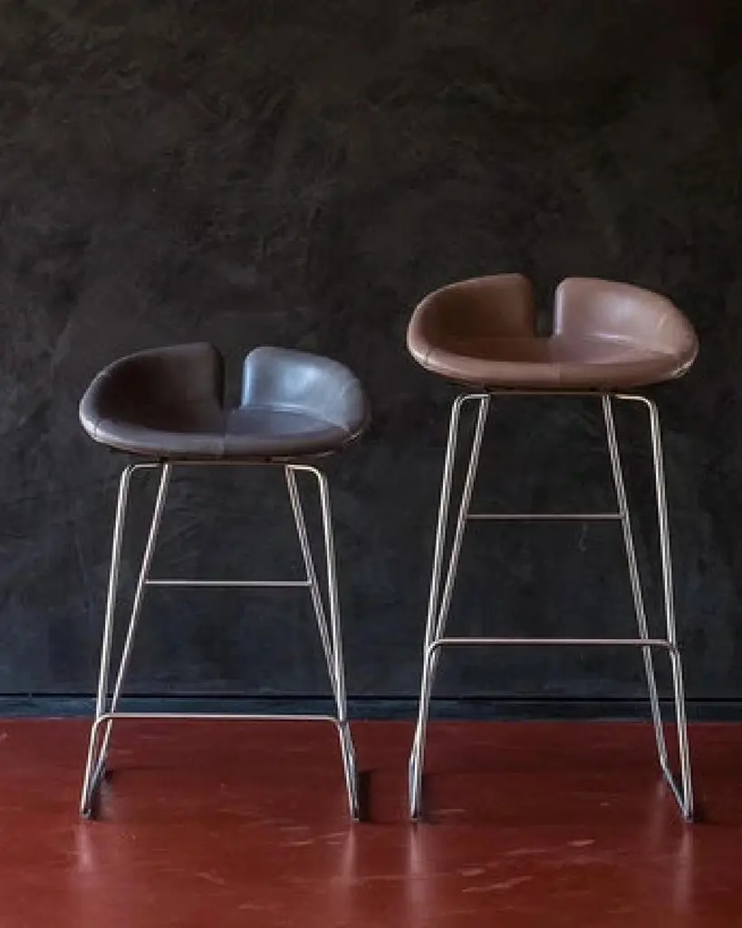 From a piece of seashell, which has been broken and smoothed by the waves, Patricia Urquiola has designed a collection of seats for both the home and public spaces. As the name suggests, there is a strong Scandinavian influence with references to Arne Jacobsen and the inlets of northern coastlines represented in the long cut-away. Like a natural cycle where the shell is reborn through the effects of time and water, the chair becomes armchair and then stool. Its broken form and abstract concept together become an object of design: smooth lines that support and envelop are picked out in decorative stitching in harmony with the essence of the chair’s structure.Seat is injected flame-retardant foam over internal steel frame covered in fabric or leather. Tubular stainless steel sled base with footrest.DIMENSIONS:Small: W.49 x D. 50 x H. 77 cmMedium: W.49 x D. 55 x H. 90 cmAvailable in different options, price upon request.
