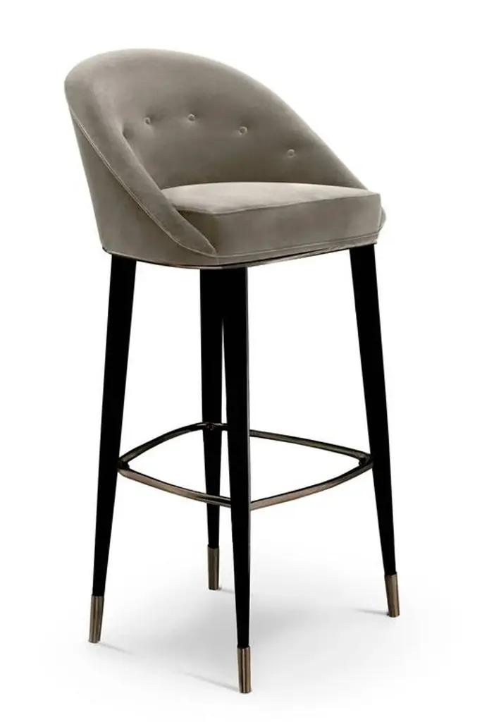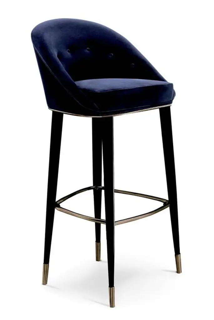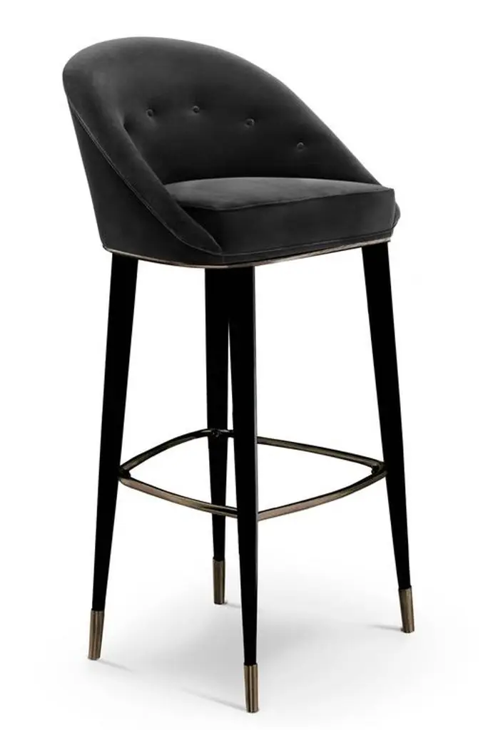Bar stool Myla made with cotton velvet,structure in black lacquered oak with aged brass details.Available with custom's fabric.