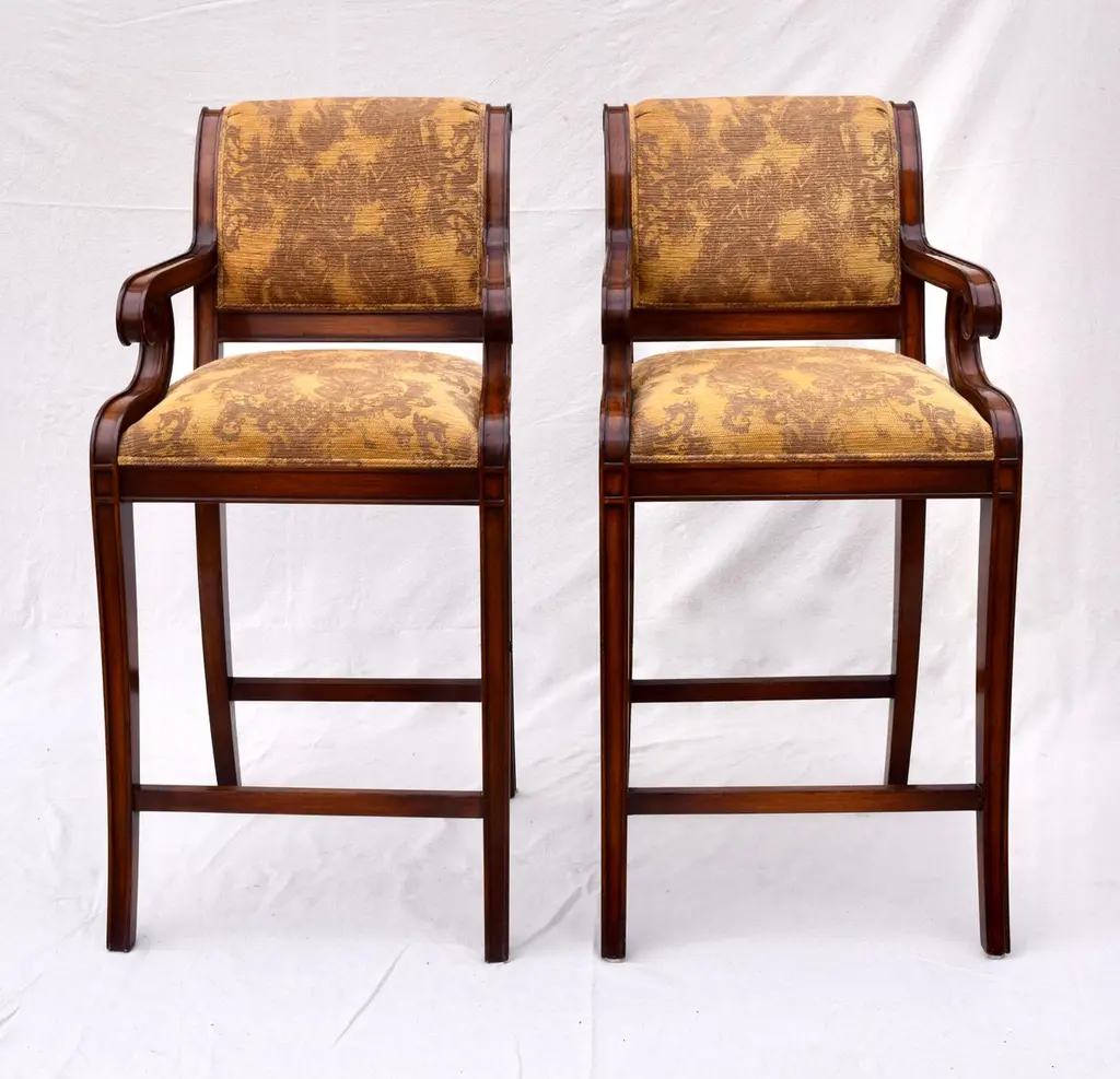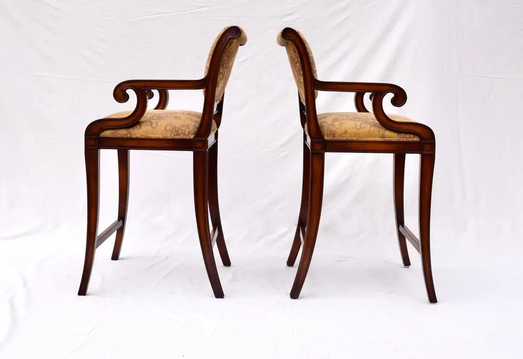 Nancy Corzine Classic Regency Bar Stool Chairs, Pair