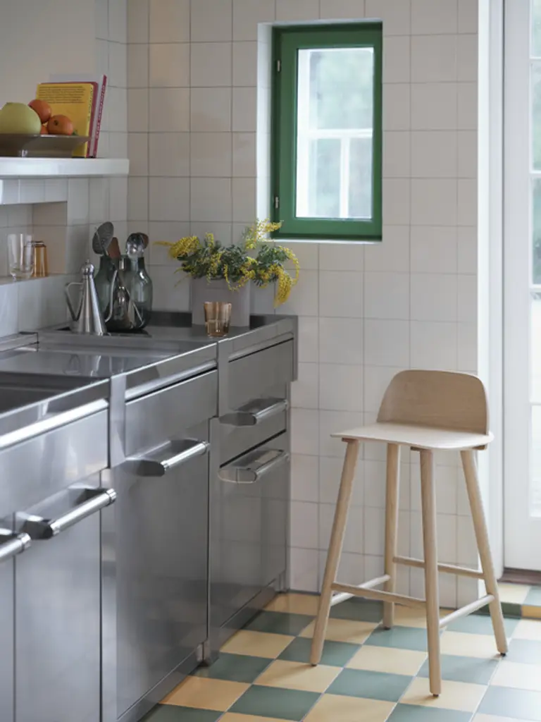 The Nerd Bar Stool is designed with a playfully contemporary expression, joined by its wooden Scandinavian materiality. The seamless integration of its back and seat makes for a characterful detail alongside the curved edges of its seat.