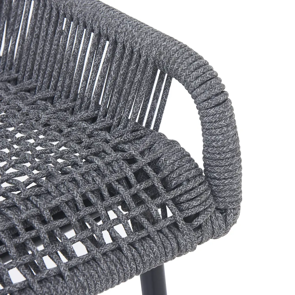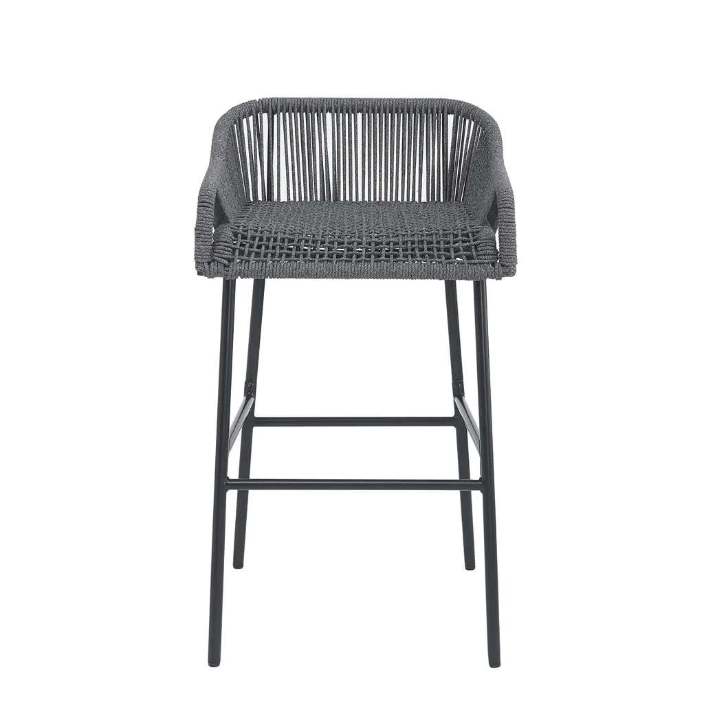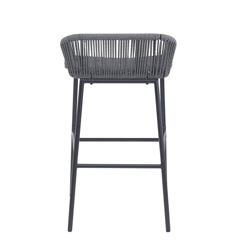 Enhance your outdoor entertainment area with these stylish and durable outdoor patio bar stools featuring a rope weave design and sturdy iron frame. Perfect for your patio, deck, garden, or balcony, these bar stools offer a chic and comfortable seating solution for any outdoor space. DURABLE: Constructed from high-quality powder coated iron, these bar stools are built to withstand the elements. The robust iron frame ensures long-lasting durability and stability, making them ideal for outdoor use. ELEGANCE: The bar stools feature an intricate rope weave design on the seat and backrest, providing a unique and contemporary look. The tightly woven rope offers both comfort and style, making these stools a standout addition to your outdoor furniture collection. WEATHER RESISTANT: The iron frame and rope weave are designed to resist various outdoor conditions, including sun, rain, and humidity. This ensures the bar stools remain in excellent condition throughout the seasons. COMFORT: Designed with ergonomics in mind, the bar stools offer comfortable seating with a supportive backrest and footrest. The rope weave design adapts to your body, providing a comfortable and relaxing seating experience. ASSEMBLY REQUIRED: This barstool requires assembly, but with easy-to-follow instructions, you'll have it set up and ready for a great rest in no time.