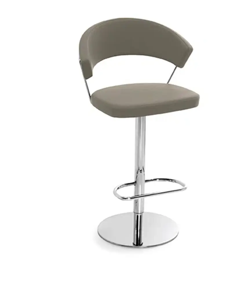 The wraparound backrest and the wide seat which makes this product always very comfortable are both upholstered. The circular weighted base guarantees it the utmost stability. Ideal for completing the furnishing of the dining room.
