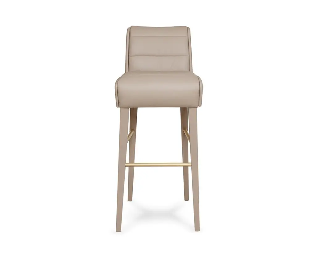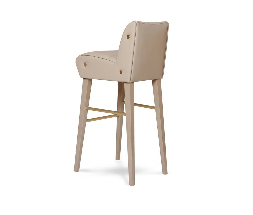 Newman Bar Stool by MunnaDimensions: D 50 x W 40 x H 102 cm. SH: 80 cm.Materials: Solid wood, foam, brass, and leather.Finish: Upholstery: Leather, ref. Cream, L02. Legs: Cream gloss lacquer. Metal detail: Brushed brass.Available in all Munna fabrics except Wild Silk. Available in client’s ownmaterial. Available upholstered, Rosewood or Ebony veneer, solid Walnut, Wengé stain, or lacquer in all RAL colors, in matt or gloss. Metal details are available in Brass, Nickel or Copper in polished or brushed. Handmade in Porto. Please contact us.Established in Porto in 2008, Munna is a furniture design brand renowned for creating handmade upholstery with unmatched craftsmanship, seamlessly blending noble materials and timeless design, for both commercial and residential projects.Made by hand in Porto, Munna’s pieces honor the profound heritage of craftsmanship, while drawing inspiration from history’s most influential artistic periods. Munna’s pieces are made of the finest fabrics such as cotton velvet, twill, leather, and silk; the finest wood veneers, such as ebony, walnut, and rosewood; sumptuous gold, silver, and copper leaves, metal details in brass, nickel, and copper, and superior lacquers.