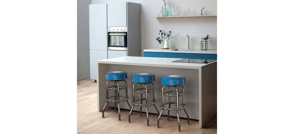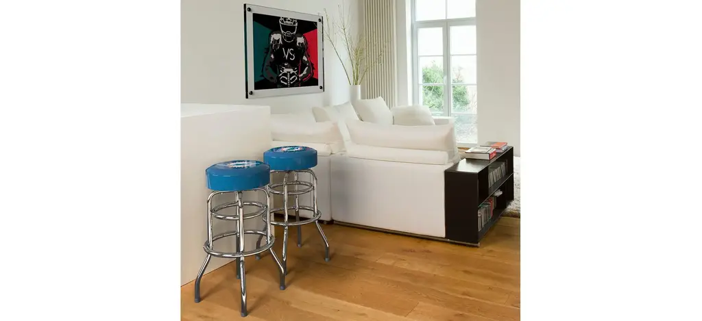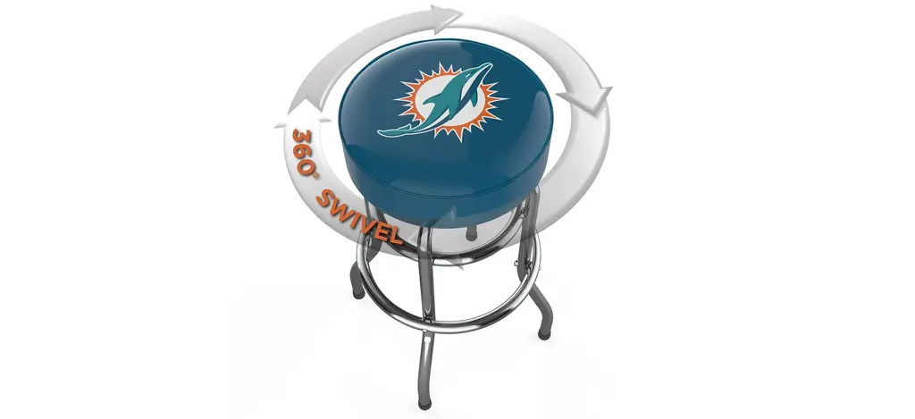 This American crafted, commercial grade barstool features a sturdy steel frame and 360 swivel seat. The vinyl seat is easy to clean and includes your favorite team logo that is sure to never scratch off.