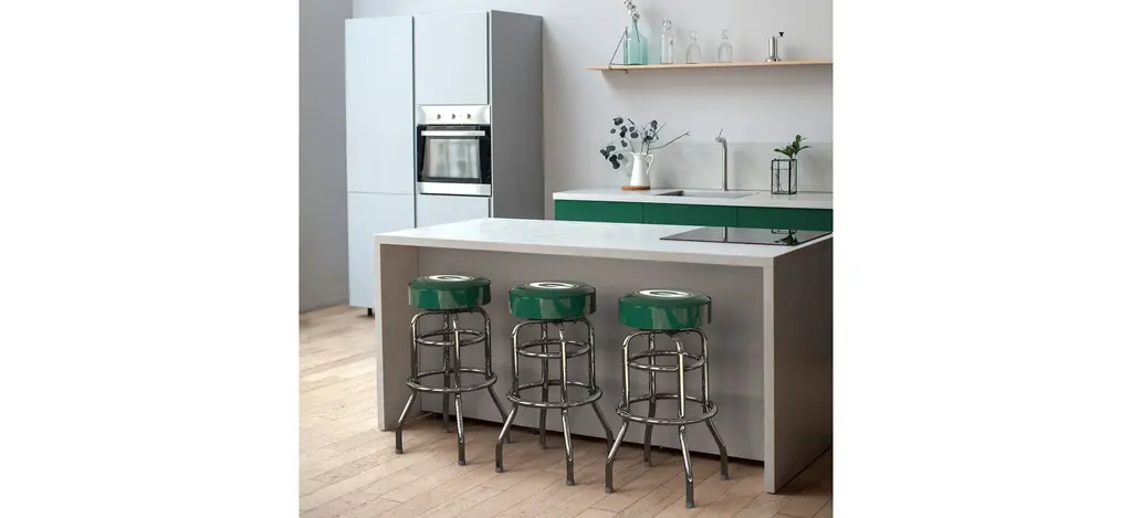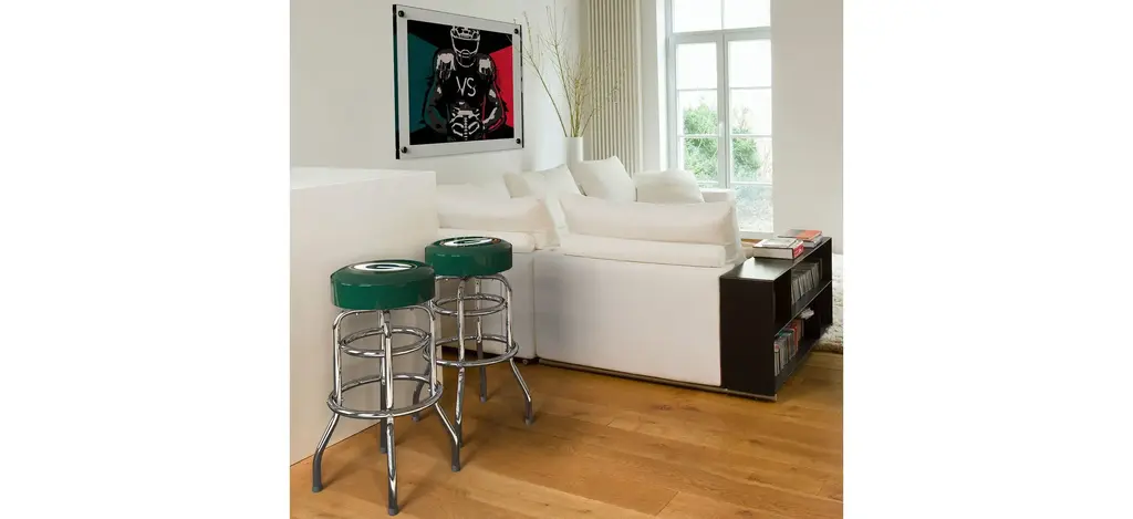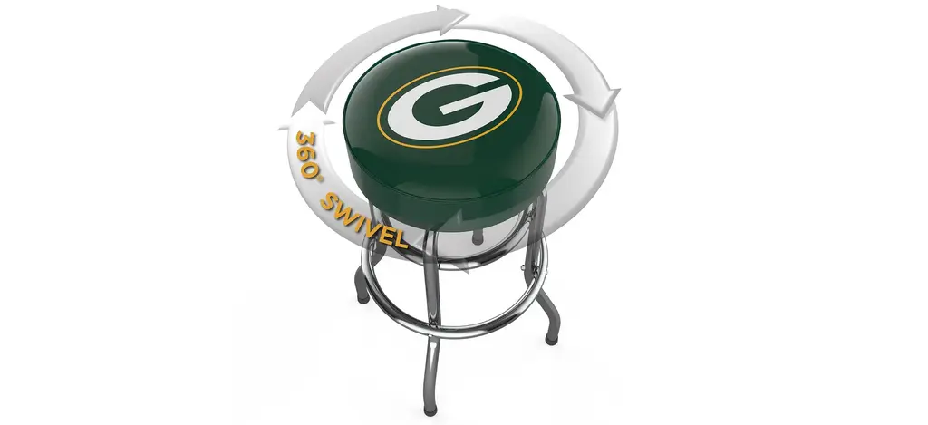 This American crafted, commercial grade barstool features a sturdy steel frame and 360 swivel seat. The vinyl seat is easy to clean and includes your favorite team logo that is sure to never scratch off.