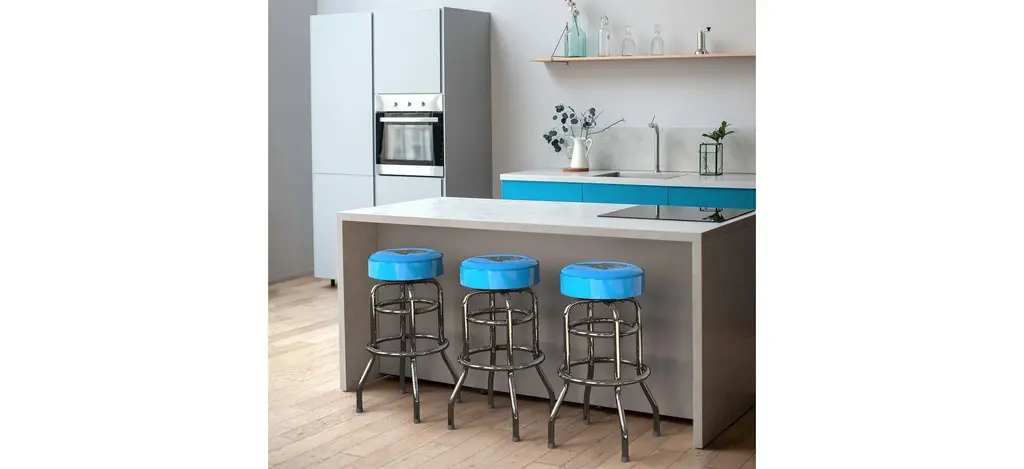 This American crafted, commercial grade barstool features a sturdy steel frame and 360 swivel seat. The vinyl seat is easy to clean and includes your favorite team logo that is sure to never scratch off.