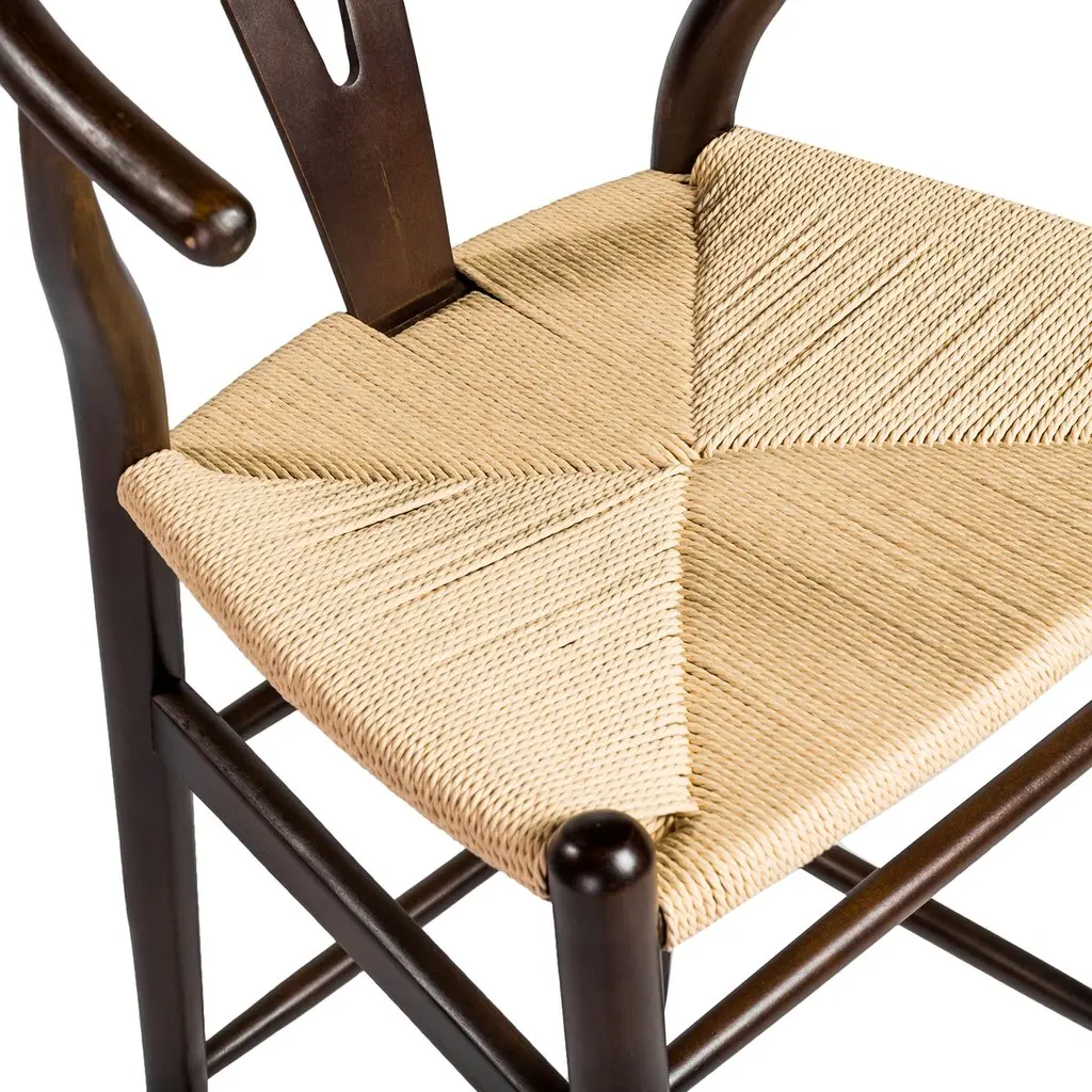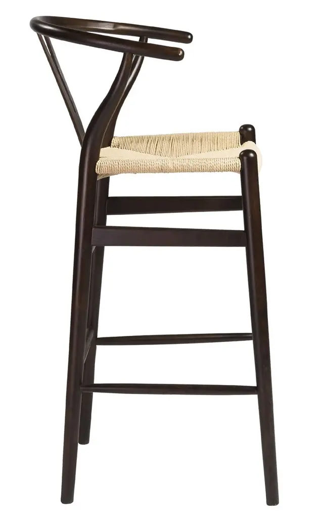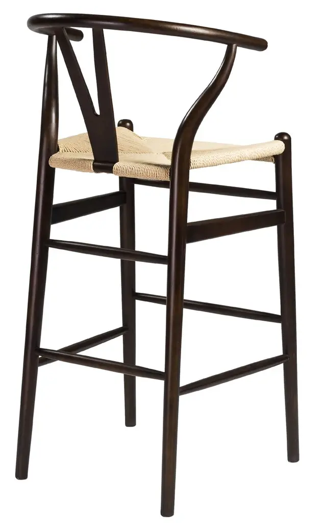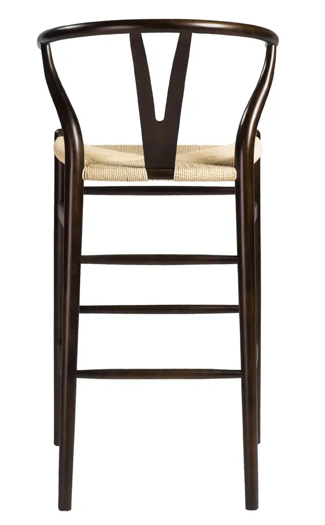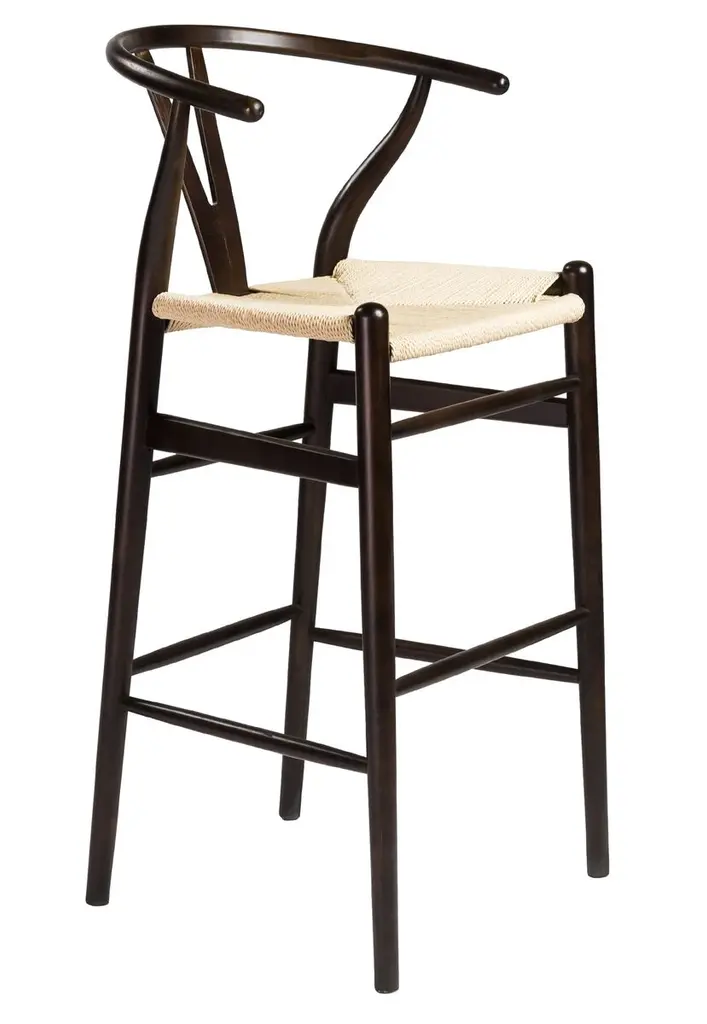 Century-old finishing techniques add to the Danish Modern finesse of this barstool. The curved back and woven rush seat ensure that the stool is as comfortable as it is lovely. Plastic glides help protect your floors.