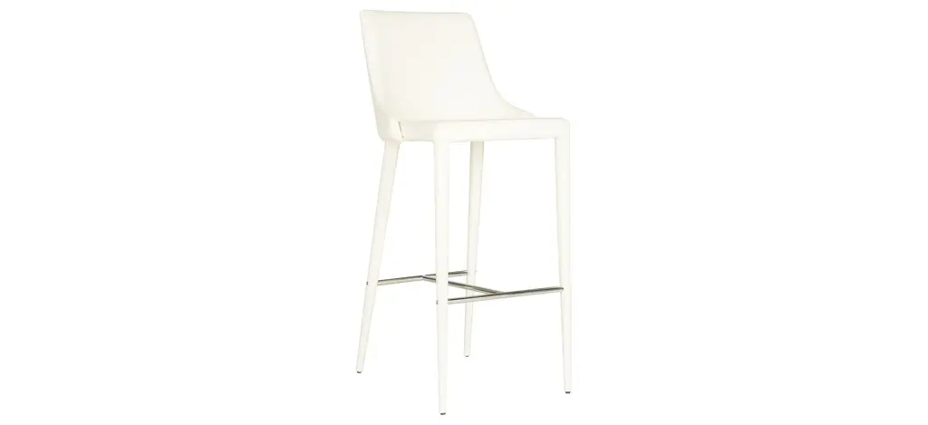 This transitional Norsi bar stool was designed for those with uncompromising taste. The stylish buttercream set is crafted iron and upholstered with Polyurethane leather for enduring good looks.