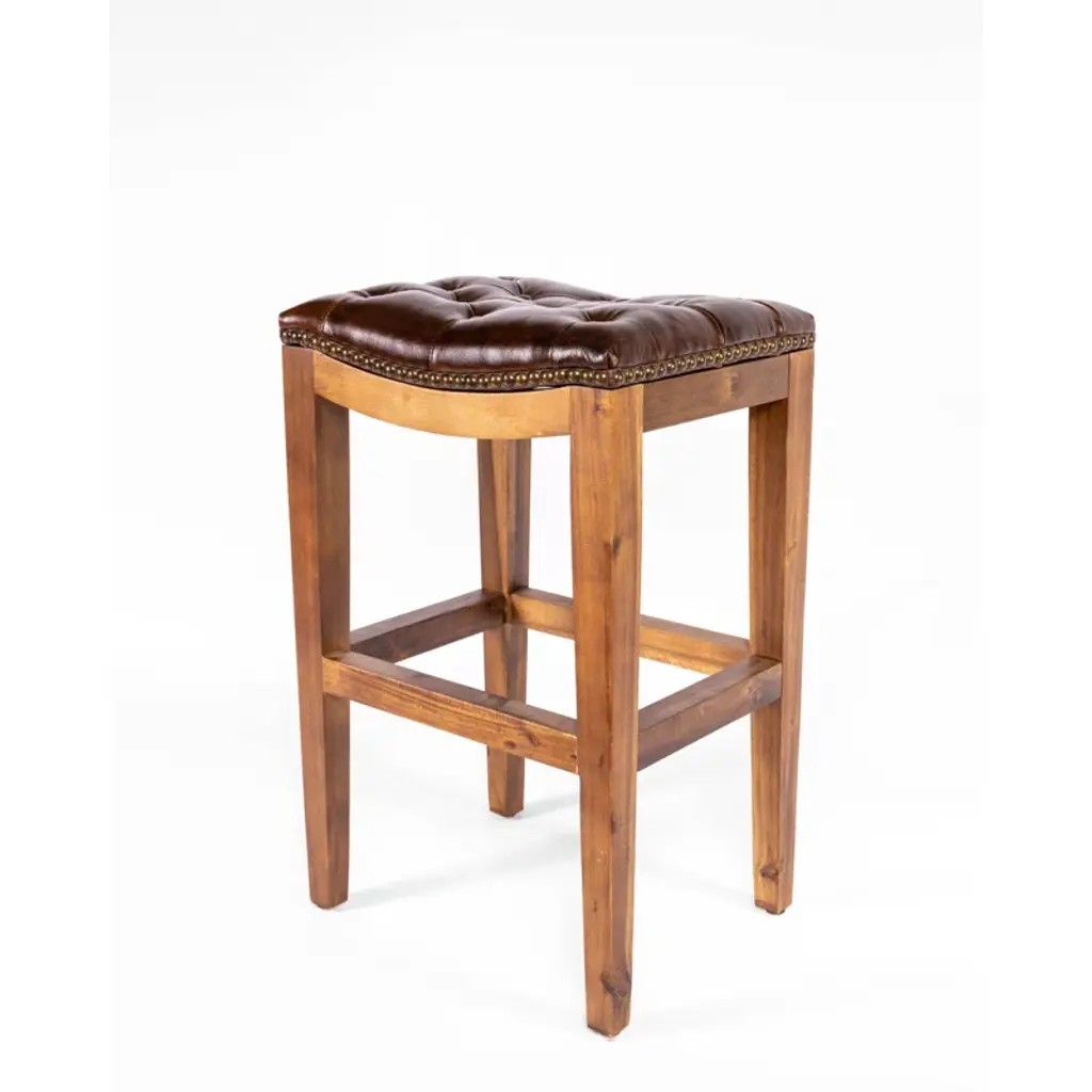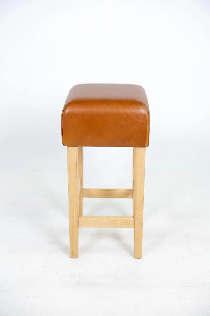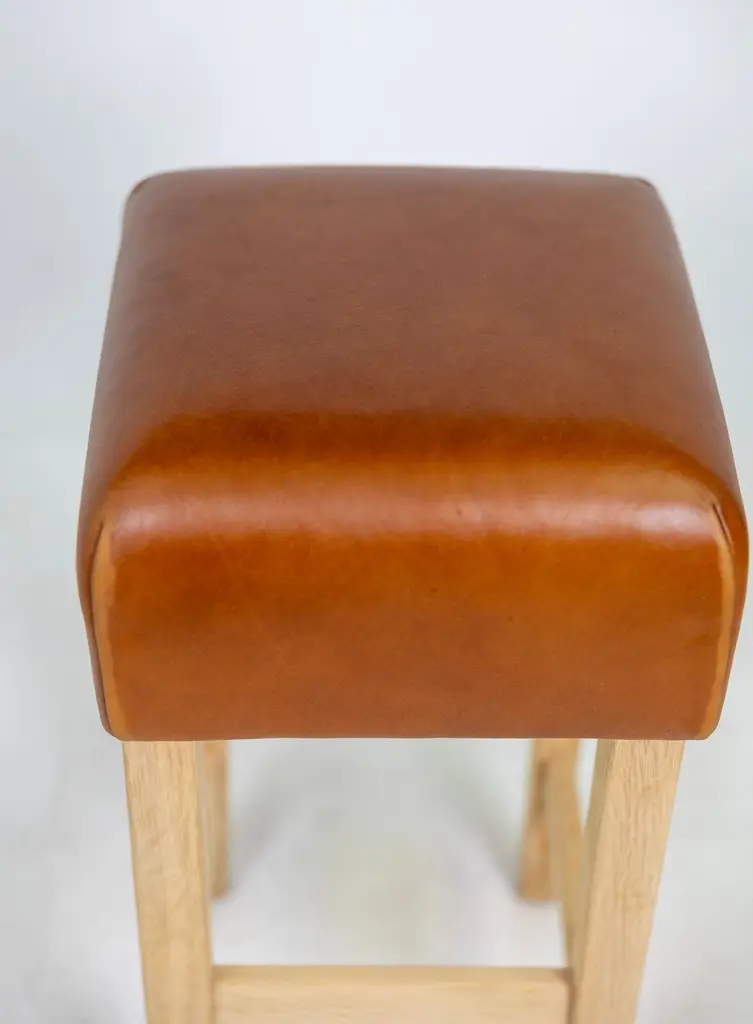 Oak And Cognac Saddle Leather Bar Stool In The Style Of Jean-Michel Frank