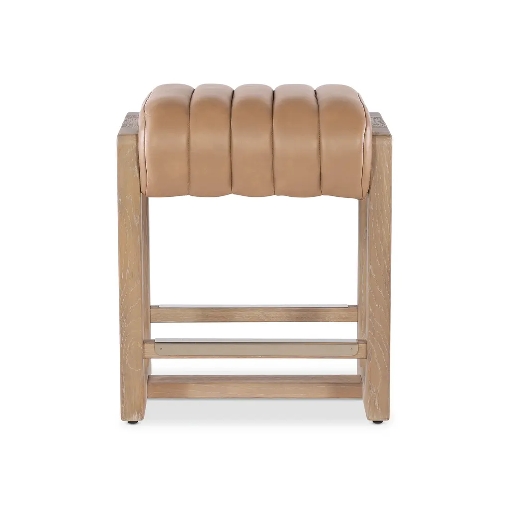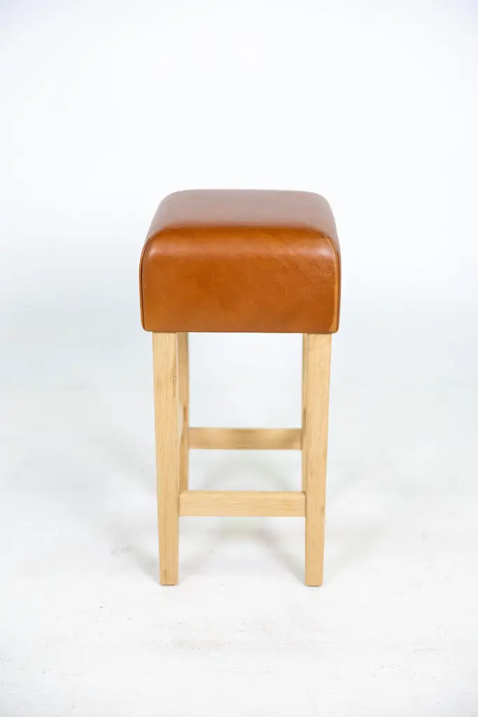 Oak And Cognac Saddle Leather Bar Stool In The Style Of Jean-Michel Frank