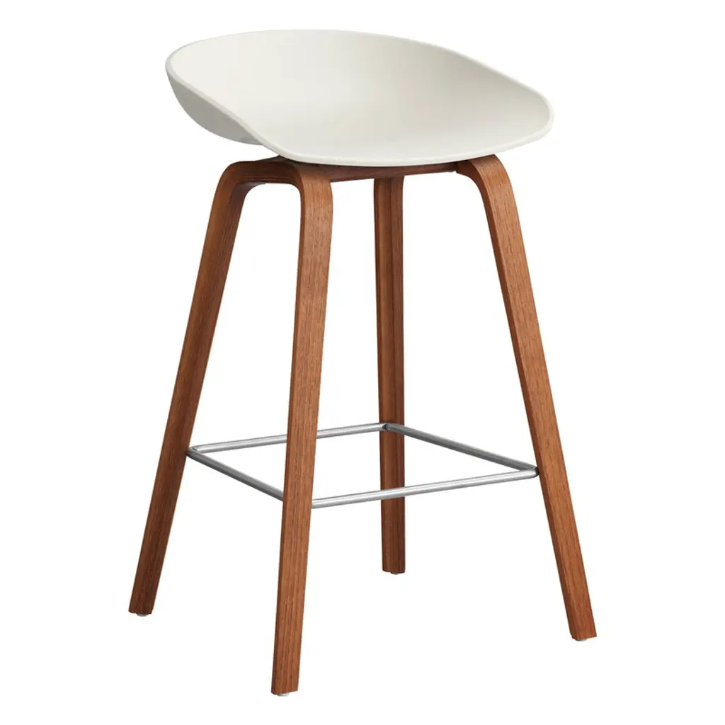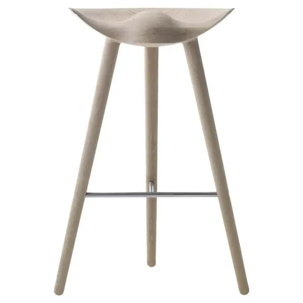 Oak and stainless steel bar stool by lassen dimensions: h 77 x w 36 x l 55.5 cm materials: oak, stainless steel in 1942 mogens lassen designed the stool ml42 as a piece for a furniture exhibition held at the danish museum of decorative art. He took inspiration from the stools used by the shoemakers of the past, and transferred the light, elegant look to the creation of this sculptural three-legged stool. The stool ml42 is still manufactured in denmark to this day with a focus on quality and danish craftsmanship, and is considered a collector’s item by international design connoisseurs.