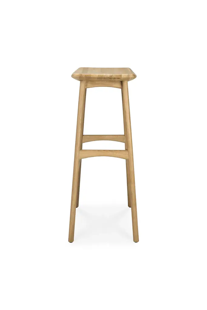 This Oak Backless Bar Stool is one of Ethnicraft's most popular designs because of its versatility. The height of this varnished solid oak Osso stool adds yet another option to its wide array of possibilities - as an elegant and sturdy kitchen stool, a sleek standing desk stool, or as an extra seating solution in the living area. The slightly curved seat and footrest offer ergonomic comfort.Download Technical Line DrawingDownload Care Instruction