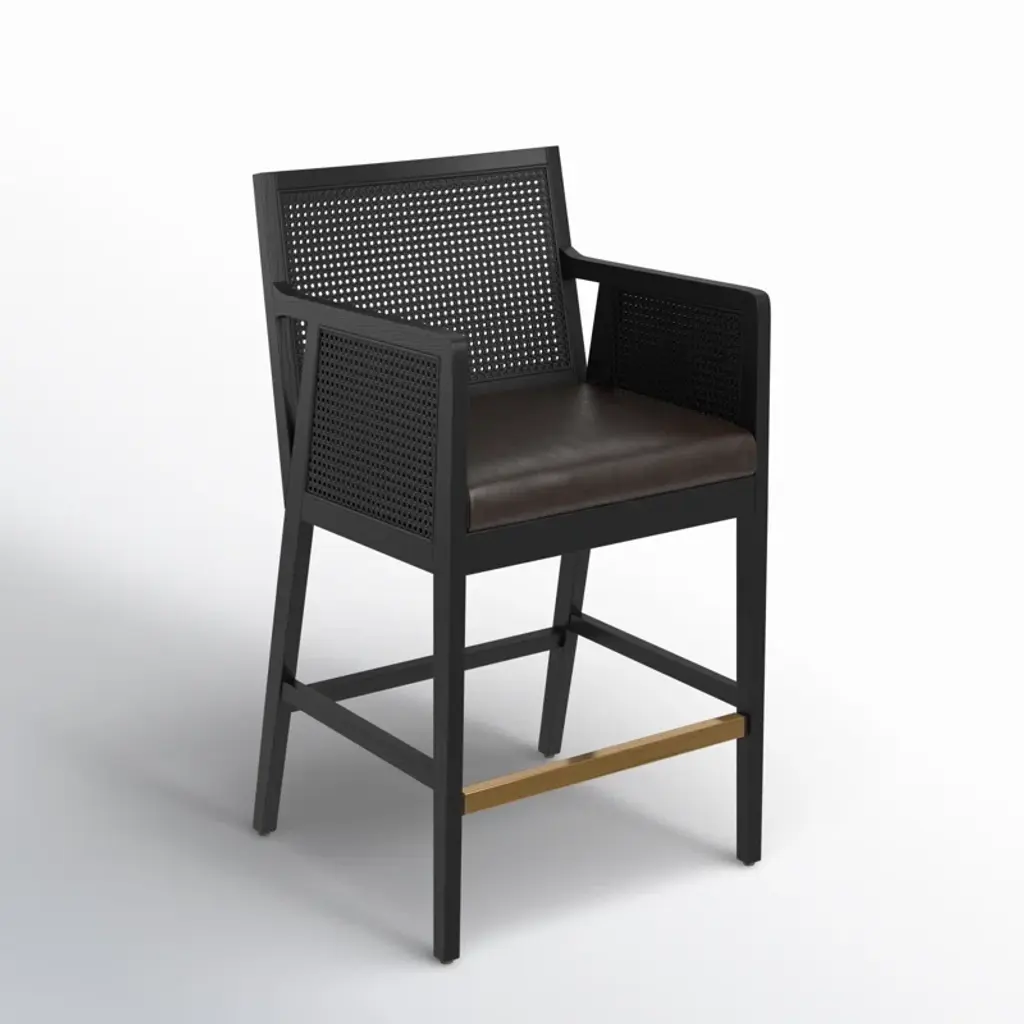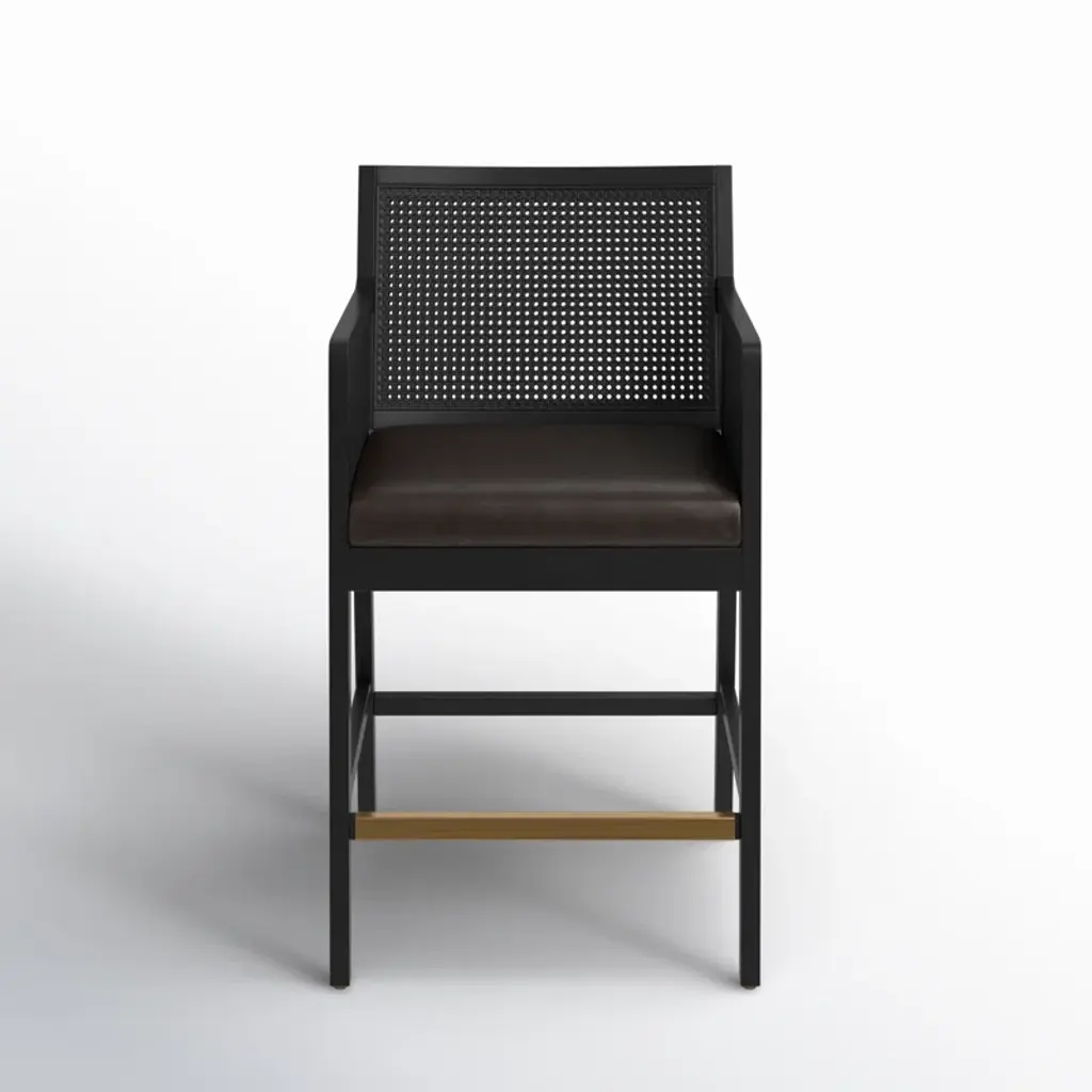 This barstool evokes effortlessly cool vibes with its clean lines complemented by organic texture. It's crafted from solid wood with a retro silhouette, and the arms and back feature woven cane inlay. We love that this stool has a built-in footrest and a leather seat cushion for added support. Plus, it arrives fully assembled, so you can skip straight to the fun part (aka styling).