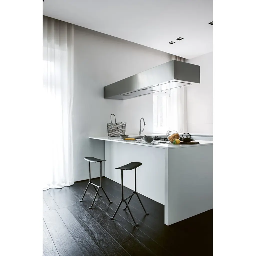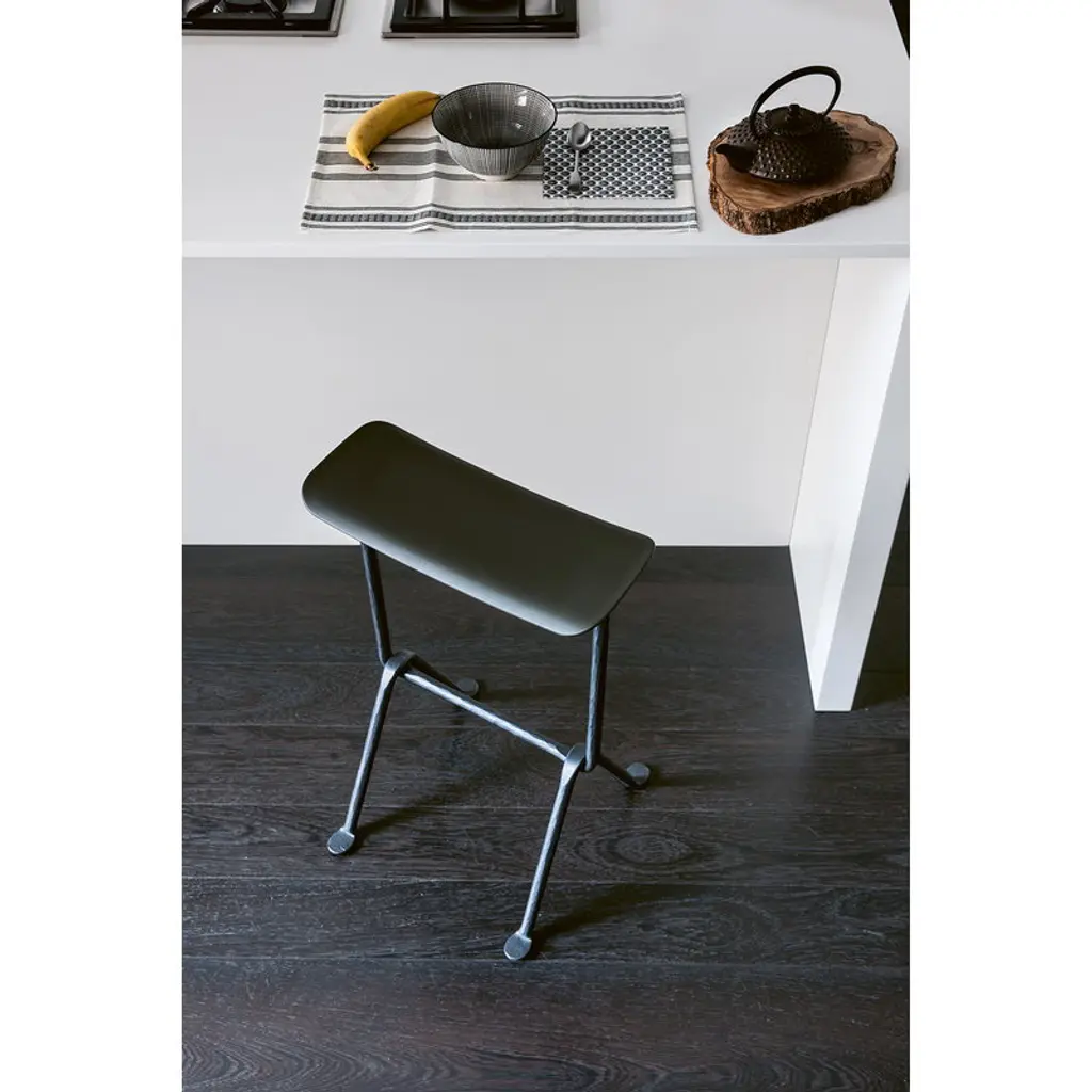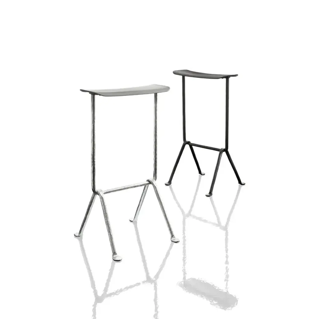 Officina by Magis is a collection of simple, elegant furniture with wrought iron legs. The Bouroullec brothers wanted to utilize the traditional forging technique in contemporary design and dreamed up a minimalist iron base featuring a raw finish with unique tool marks. The slender but sturdy iron legs have been galvanized and combined with polypropylene seats, which makes the Officina bar stools suitable also for outdoor use.