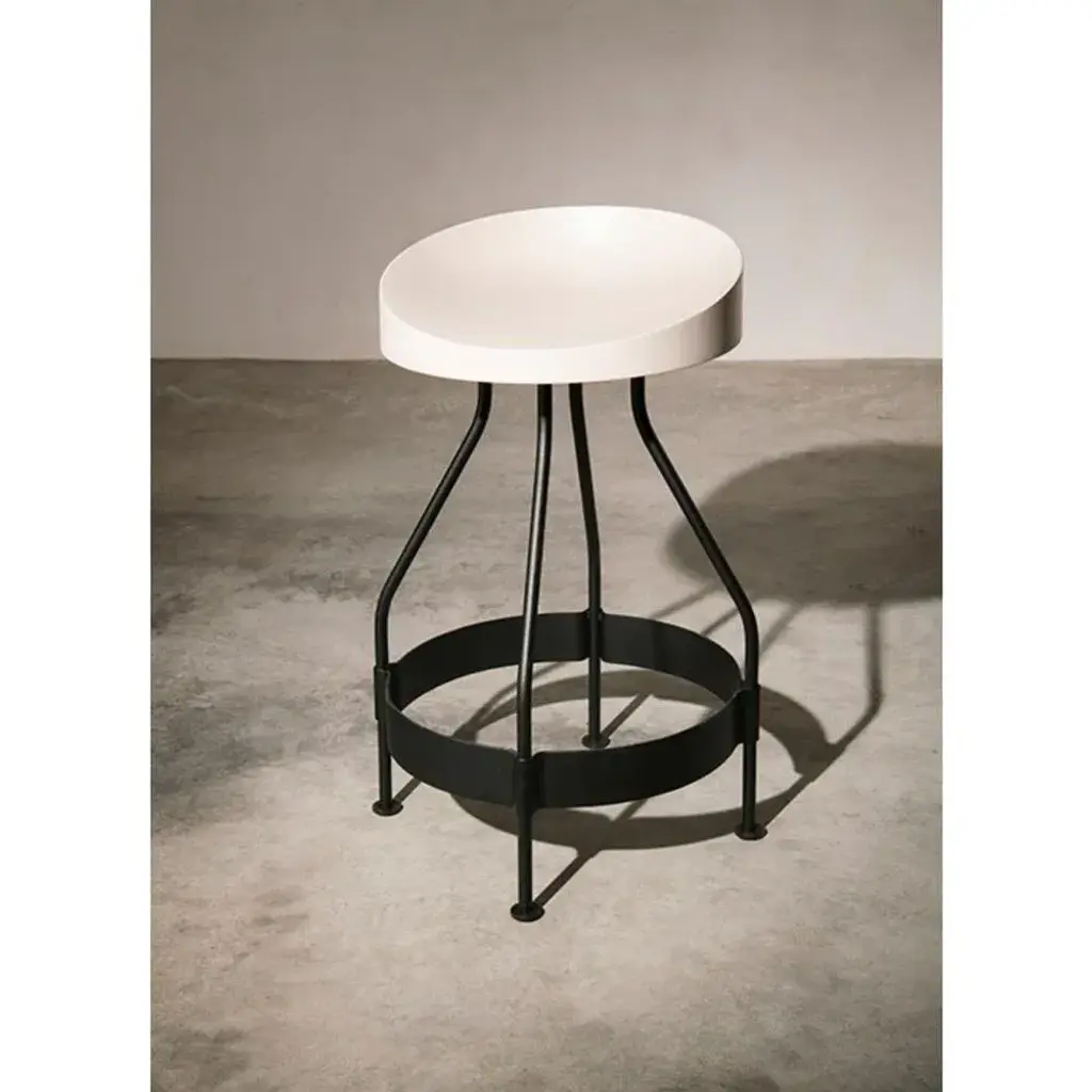 Olindias bar stool by luca nichetto materials: shell: dark green ncs 8010 b70g/coral ncs 2570 y70r/ duck blue ncs 6020 b10g/warm light ncs 2002 y50r lacquered polyurethane structure: black powder-coated metal dimensions: w48. 2 x d48.2 x h83 cm hs 75 cm. Olindias is a bar stool able to easily adapt to a variety of environments. With a bold design that recalls the shape of a jellyfish, characterised by curved lines and a contemporary elegance, olindias renews the archetype of the bar stool adding a strong personality to a classic piece. A minimalist structure composed by tubular legs in metal converges to the top to support the seat. Italian designer luca nichetto is the art director of la manufacture. Born in venice in 1976, he studied there at the iuav, the venice university institute of architecture, from which he graduated in industrial design. In 1999, he started his career designing his first projects for salviati using murano glass. He went on to collaborate with foscarini as a designer and consultant. In 2006, he established his own studio in venice, which specialised in industrial design and design consulting. Five years later, in 2011, nichetto opened a second studio in stockholm, sweden, where he now works and resides. Throughout his career, nichetto has served as art director for a number of international design brands. .