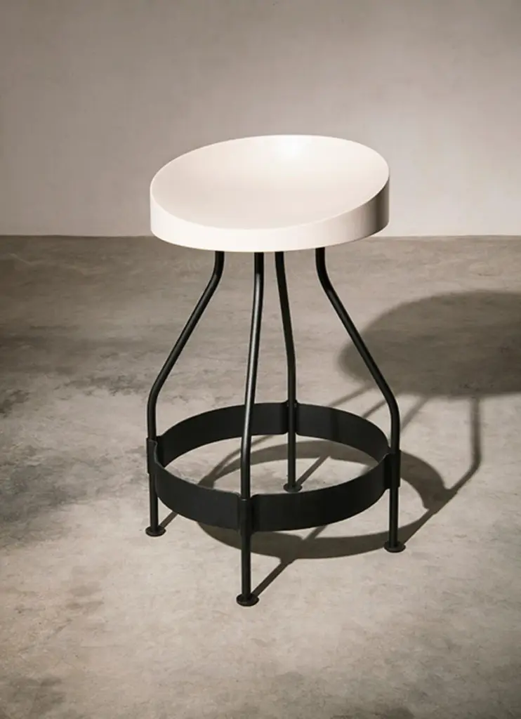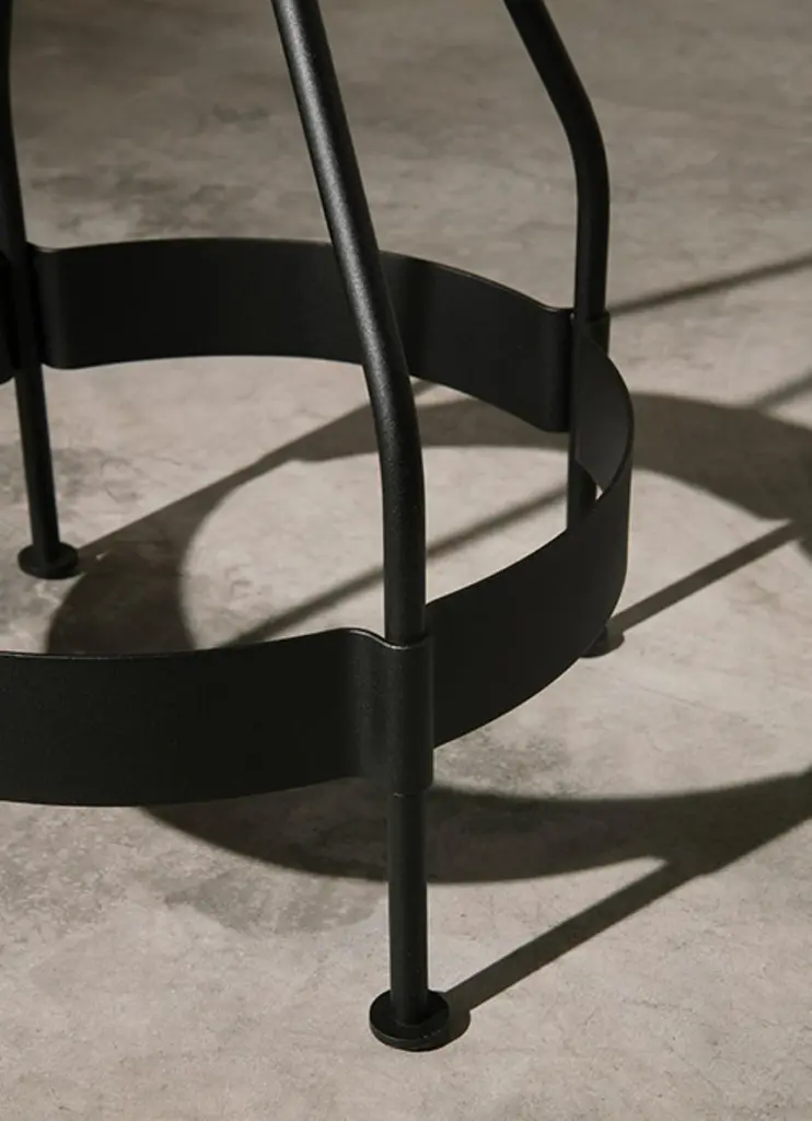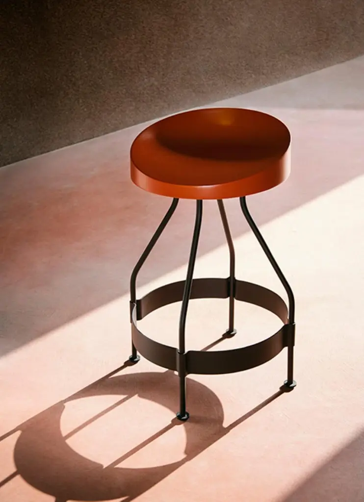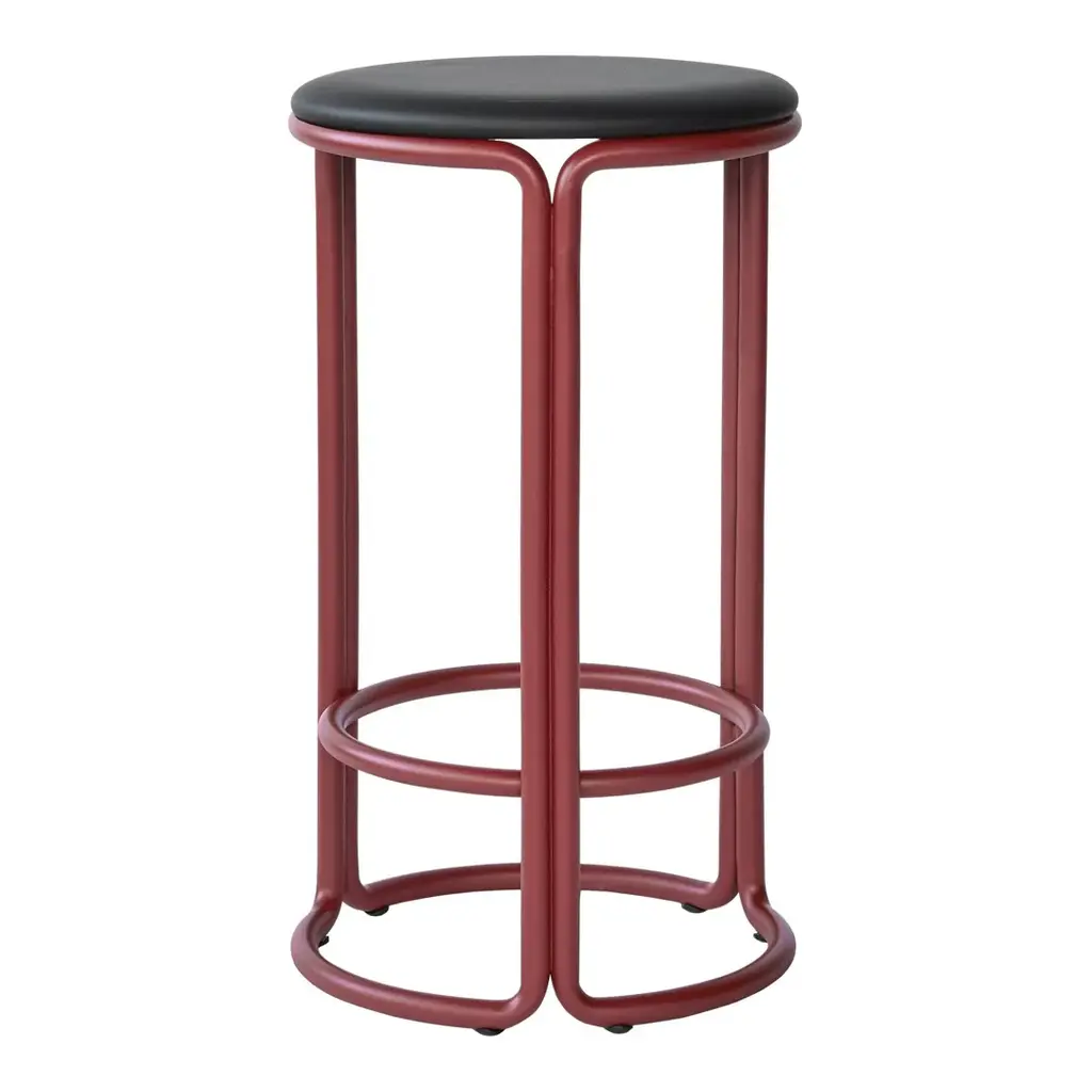 Olindias outdoor Tabouret by Luca Nichetto Dimensions: W 48 x D 48 x H 83 cmMaterials: Black powder coat metal structure, Seat in black/coral/duck blue/warm grey lacquered poliurethaneOlindias is a bar stool that can easily be adapted to all types of environments.Italian designer Luca Nichetto, artistic director of La Manufacture, was born in Venice in 1976. He studied at IUAV, the University Institute of Architecture in Venice, from which he graduated in industrial design.