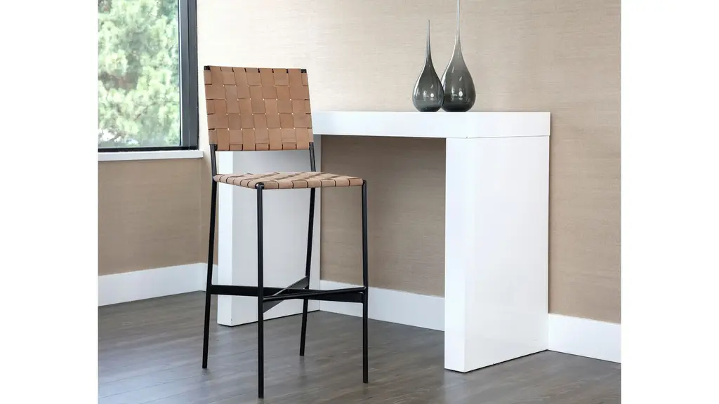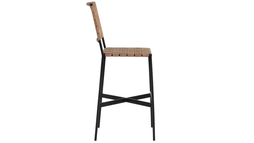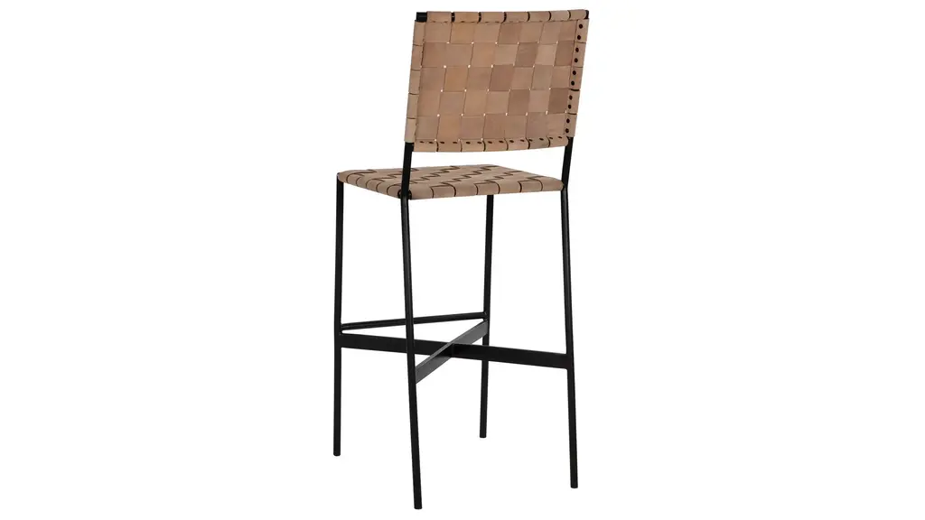 Omari Barstool offers comfortable seating and unique style. Features a weaved seat in black suede leather and finished with a black iron frame. Also available in light tan suede leather. Handle with Care: This design has been crafted with 100% leather. Leather is a natural material; as such, colour variations, markings, wrinkles, grooves and light scratches are acceptable and appreciated characteristics. No two pieces are alike. Visit our Product Care page for more information on how to ensure the lasting beauty of this piece.