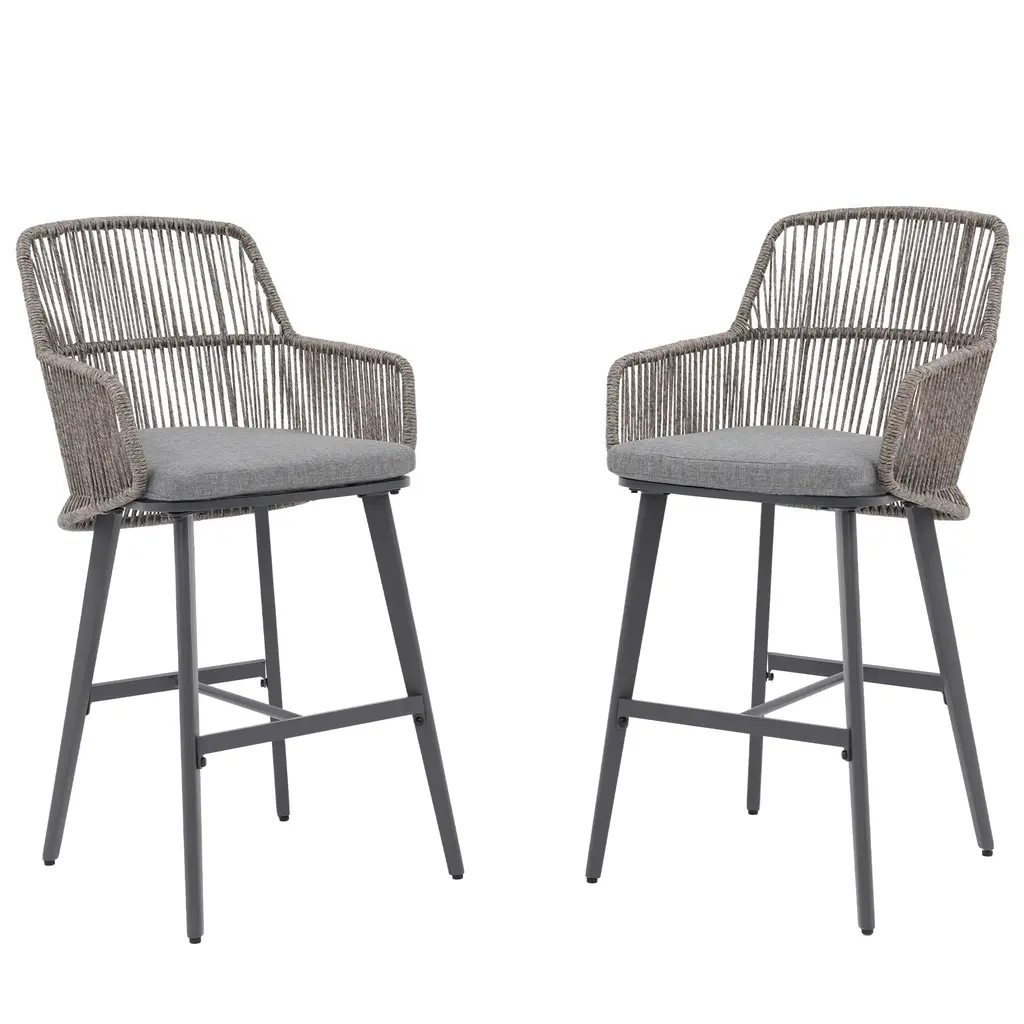 Outdoor 2-Piece Arm Barstool Chairs With Cushions - Dark Grey
